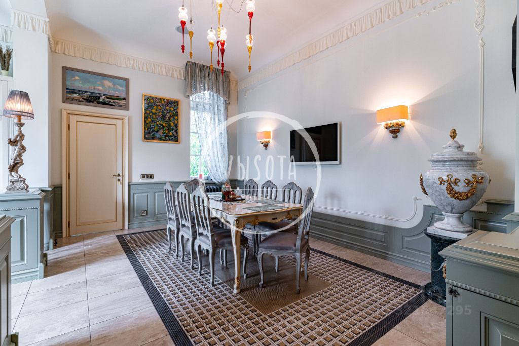 Предлагается к продаже уникальная резиденция в живописном коттеджном поселке Никольская Слобода. Проект известного архитектора, созданный с использованием лучших отделочных материалов, индивидуальные фасадные решения выглядят по-настоящему изящно. Все архитектурные элементы выполнены в стиле ампир. В доме итальянская мебель, паркет, камень, плитка и свет. Дополнен интерьер авторскими изделиями. Эксклюзивный дизайн кухни, премиальная итальянская сантехника, домашний кинотеатр с аудиосистемой 7.1. Просторная СПА-зона с турецкой баней, хаммамом и гидромассажной ванной.