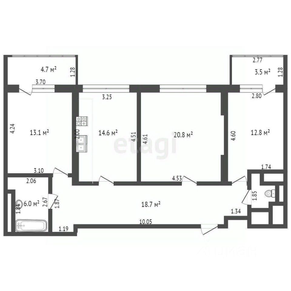 Просторная трехкомнатная квартира площадью 84,7 кв. м расположена на 6 этаже современного 29-этажного монолитного дома в жилом комплексе ''Спасский мост'' на Красногорском бульваре. Дом сдан в 2020 году, отличается высоким качеством строительства и продуманной инфраструктурой. Высота потолков — 3 метра, что усиливает ощущение простора. Площадь жилых помещений — 65 кв. м, кухня — 15 кв. м, что позволяет удобно разместить мебель и технику. Из окон открывается вид на благоустроенную набережную Москвы-реки и Митинский ландшафтный парк.