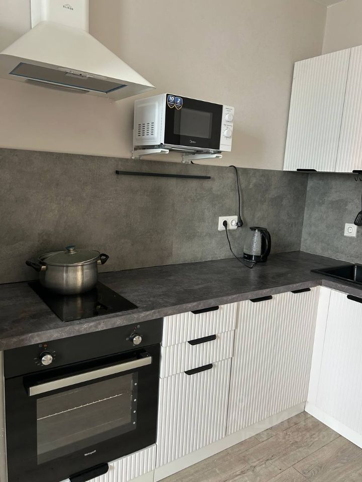 - Полностью оснащён всей необходимой мебелью и техникой: комплект мебели, ТВ 50 дюймов,стильная кухня с духовым шкафом, варочной панелью, холодильником, вытяжкой, стиральной машиной.