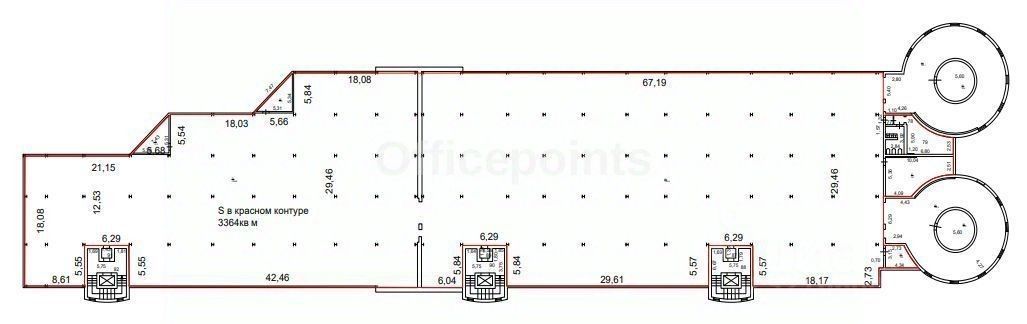 Помещение без отделки, открытая планировка. Приточно-вытяжная система вентиляции, центральная система кондиционирования. В наличии наземная парковка.