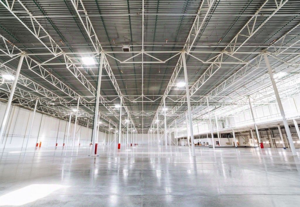 Высота потолков 12 м, сверхровный бетонный пол с антипылевым покрытием и распределенной нагрузкой 8 т/м2.