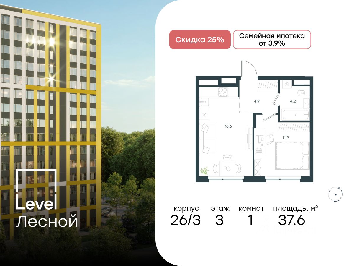 В районе, утопающем в густой зелени лесов, многочисленных парков и скверов, продаётся 1-комнатная квартира площадью 37.60 кв.м без отделки. Квартира расположена на 3 этаже в жилом комплексе комфорт-класса Level Лесной (компания Level Group/Левел групп).