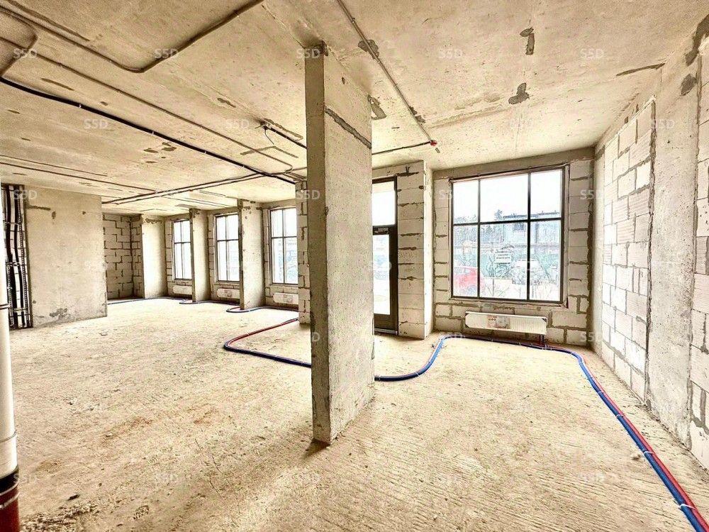 Технические параметры: Первый этаж с витринными окнами 8-ти этажного жилого дома, площадью 155.7 м2. Два отдельный входа с центральной улице, свободная планировка. Высота потолков 4 м, количество электроэнергии 45.5 кВт. Состояния помещения - бетон.