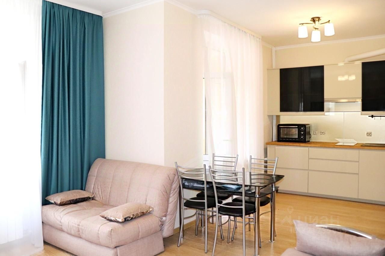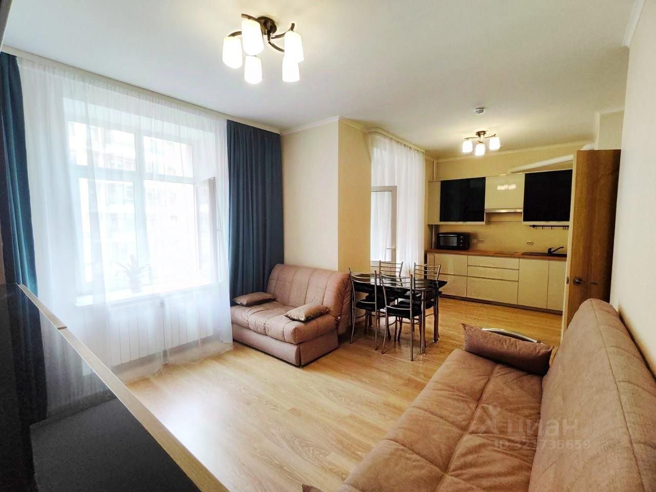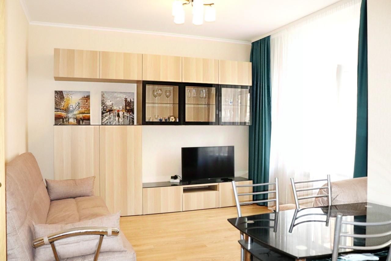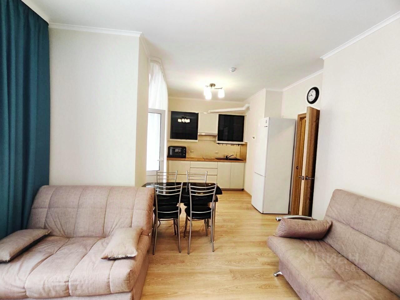 Квартира-распашонка, есть изолированная спальня, просторная кухня-гостиная на 22 кв.м, балкон площадью 6 кв.м и раздельный санузел.