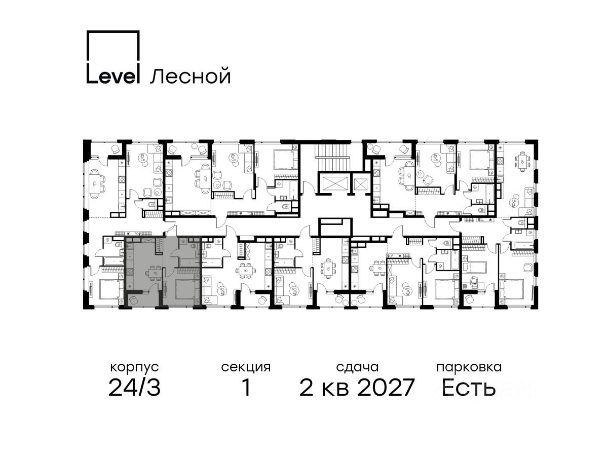 продам 1-к, Левел Лесной ЖК, 24/39 858 444 ₽