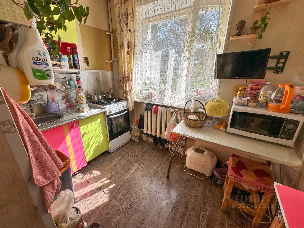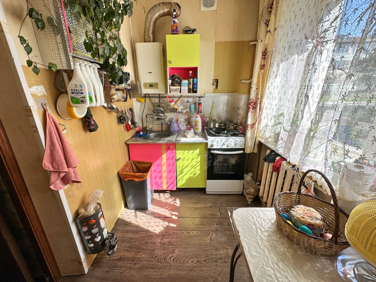Квартира расположена на 1-ом этаже двухэтажного кирпичного дома 1970 года постройки. Общая площадь квартиры: 46,1 кв.м., жилая площадь 31,9, кухня 4,9 кв.м. Санузел раздельный. Комнаты совмещенные. Квартира не угловая очень теплая. Коммуникации все центральные. Горячая вода от газовой колонки.