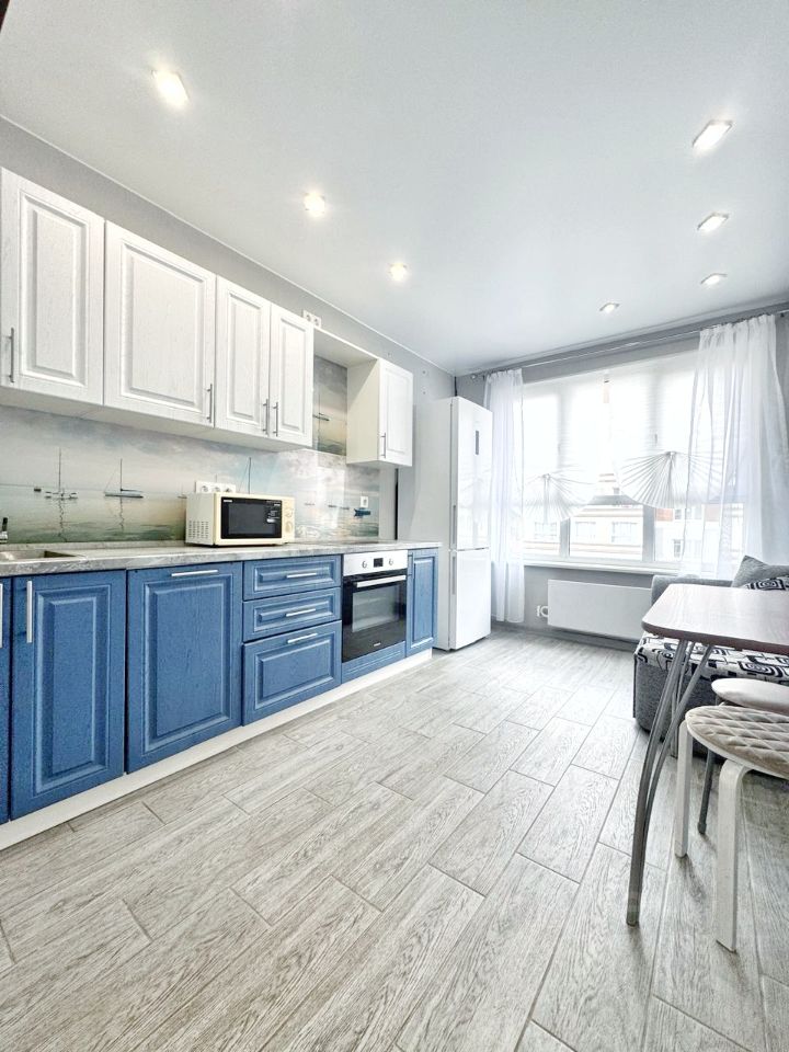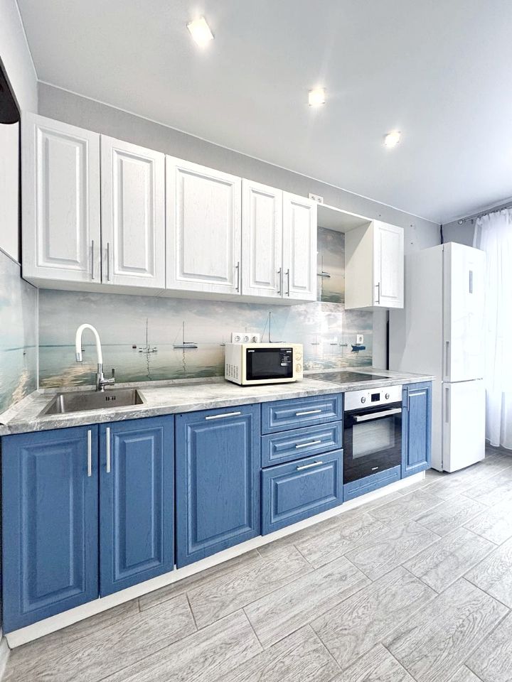В квартире сделан качественный евроремонт, полностью меблирована, в комнатах и на кухне есть всё необходимое для комфортного проживания. Из техники установлены холодильник, телевизор и стиральная машина. Ванная комната оснащена современной сантехникой и ванной. Окна выходят на улицу.