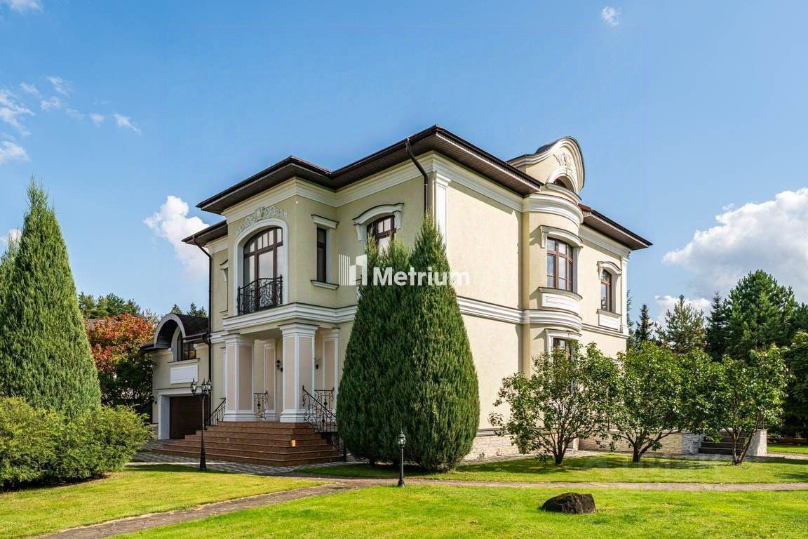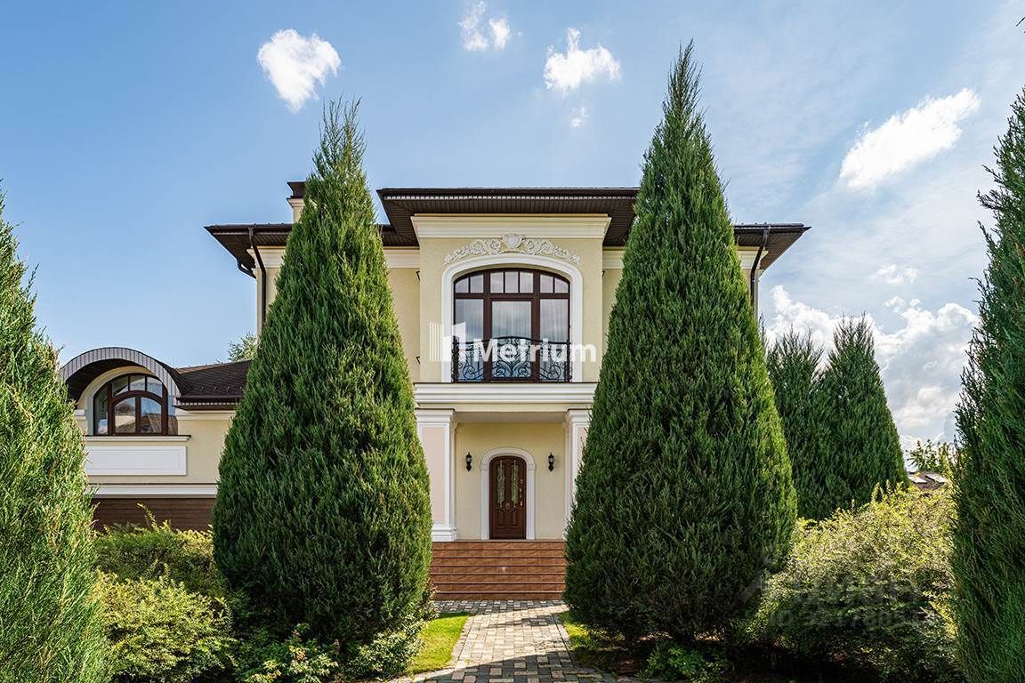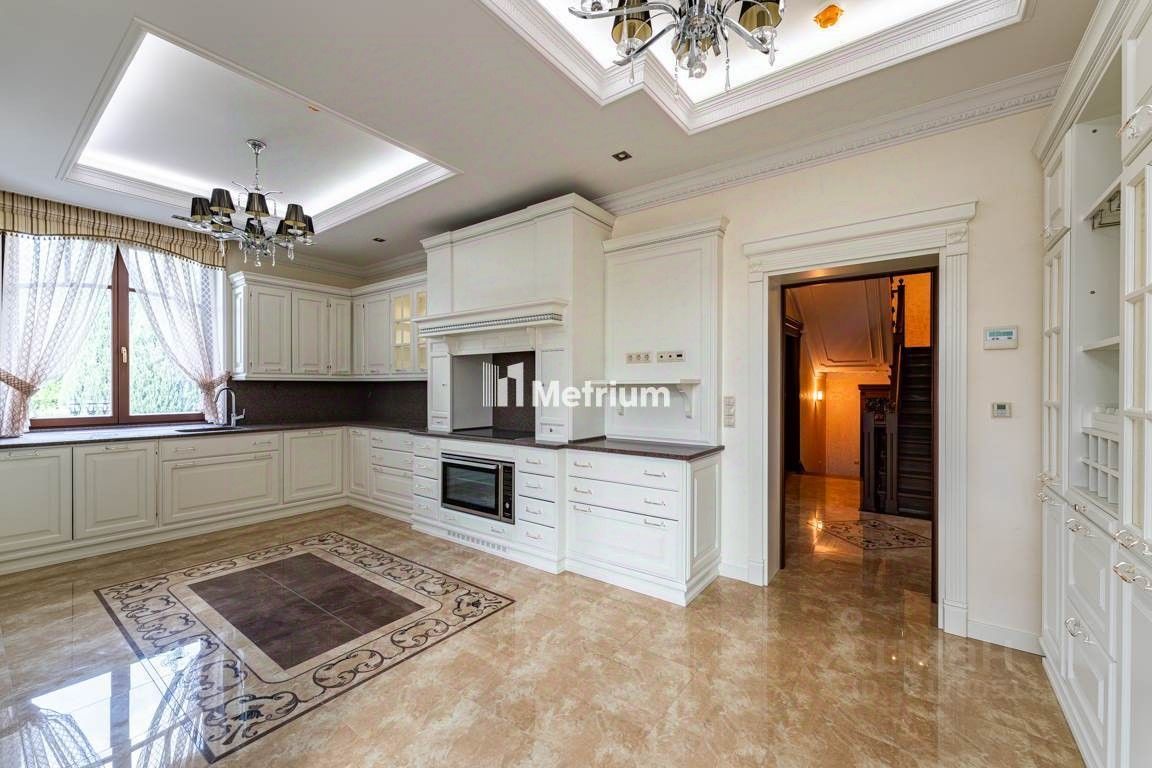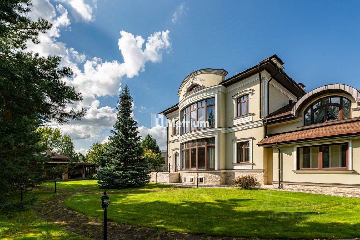 ID 5057 Коттедж в классическом стиле под ключ без мебели общей площадью 860 м2, на участке правильной формы 29 соток с ландшафтным дизайном чайным домиком и декоративным прудом. В доме 5 спален и две кухни. Дом находится в центре, в обжитой и застроенной части поселка.
