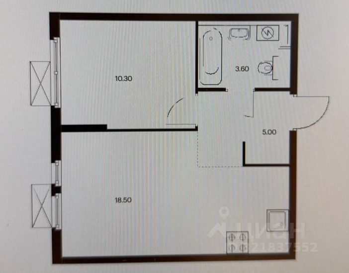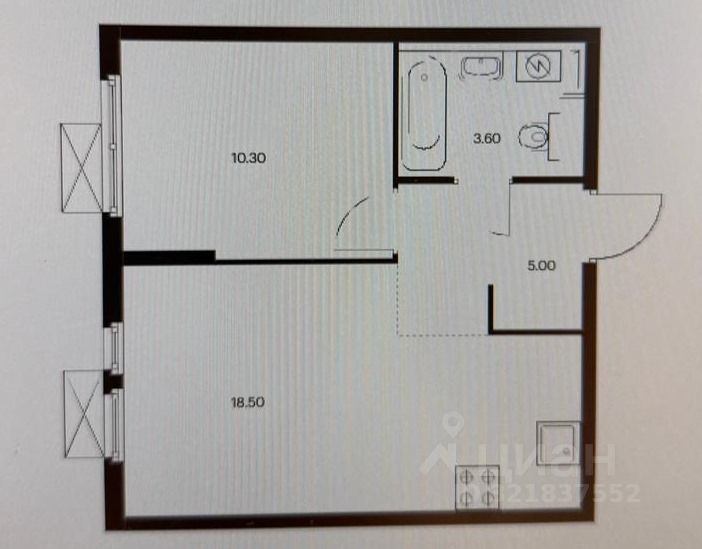 Сдаётся впервые. Евродвушка, кухня гостиная 20 м. и спальня 11 м.