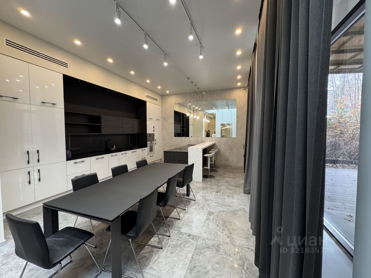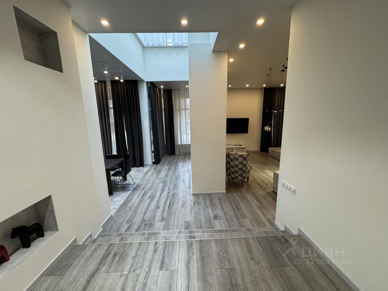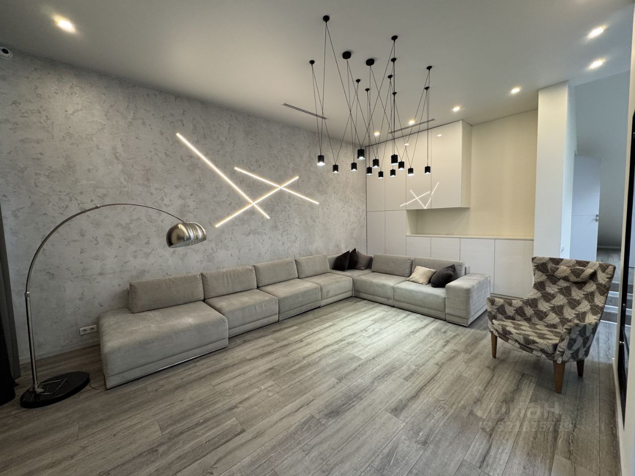 Охраняемый коттеджный поселок Резиденция Рублево, дом-дуплекс На первом этаже имеется гараж на две машины, гостевая комната с собственной ванной комнатой, хозблок с постирочной, кухня с обеденной зоной и зал, из которого можно выйти на патио с видом на парк.