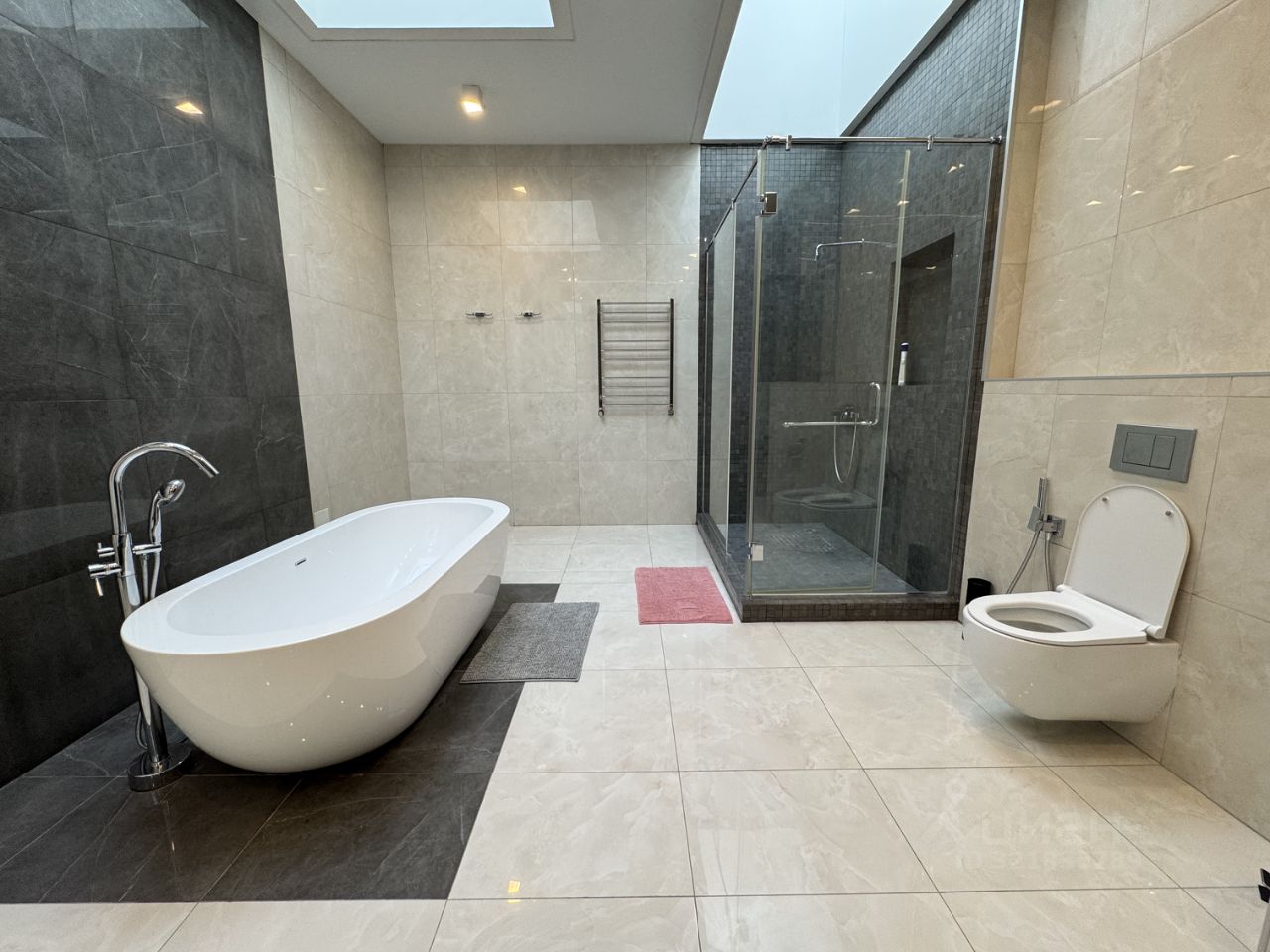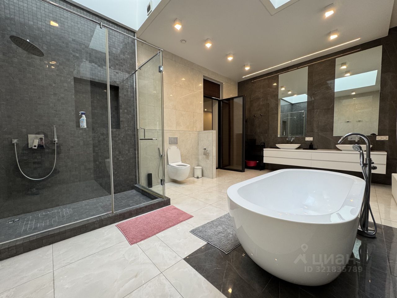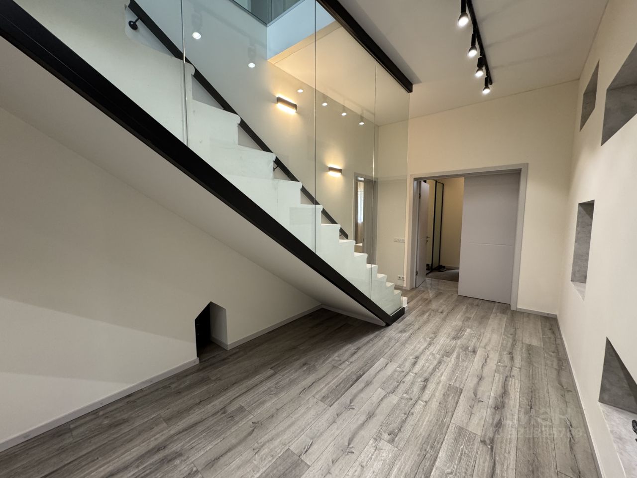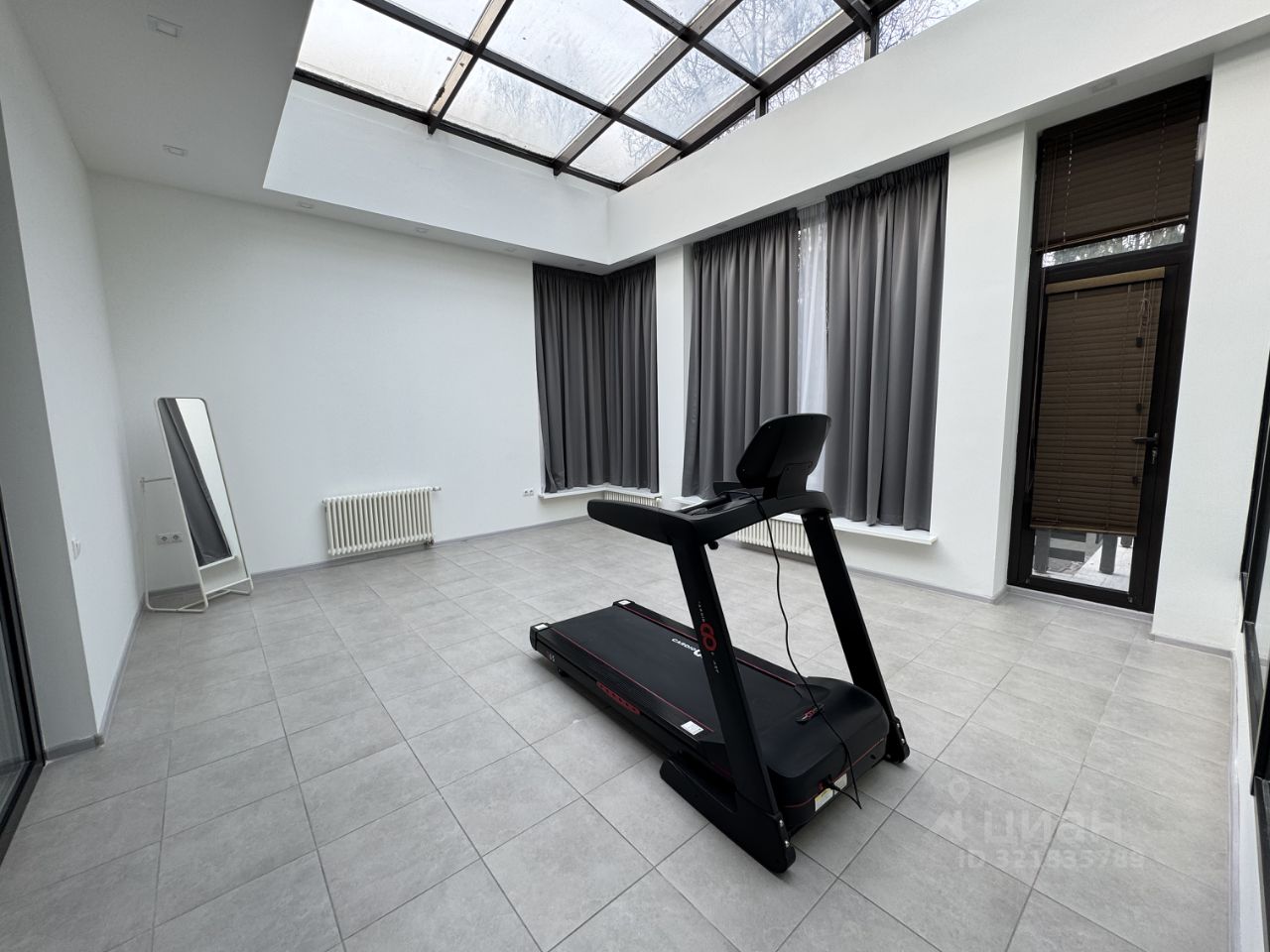 Охраняемый коттеджный поселок Резиденция Рублево, дом-дуплекс На первом этаже имеется гараж на две машины, гостевая комната с собственной ванной комнатой, хозблок с постирочной, кухня с обеденной зоной и зал, из которого можно выйти на патио с видом на парк.