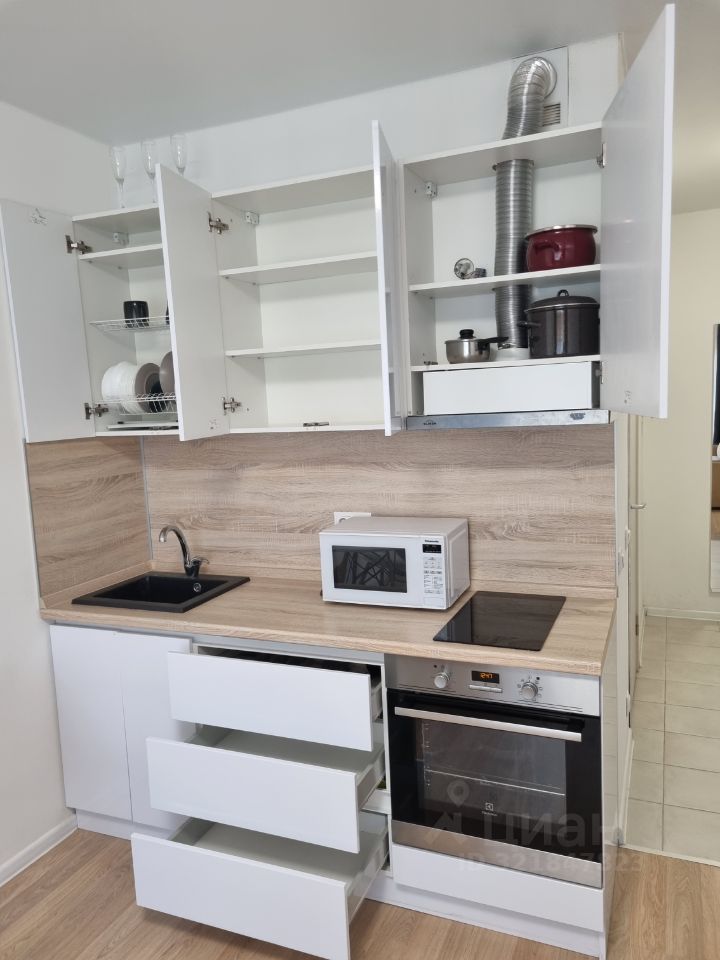 Впервые сдается студия в отличном состоянии. Встроенная кухня. Большой шкаф купе. Встроенный холодильник. Большой диван.
