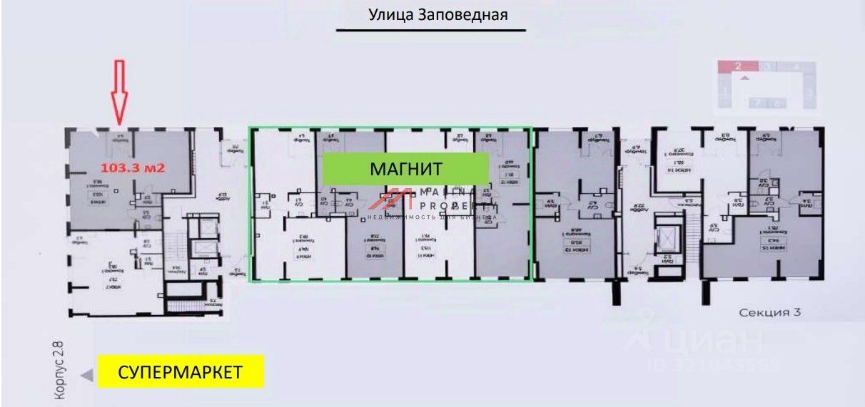 Продажа торгового помещения 103,3 м2 по адресу г. Красногорск, ул. Заповедная, д.22 (20 минут транспортом от метро Строгино). 1ая линия.