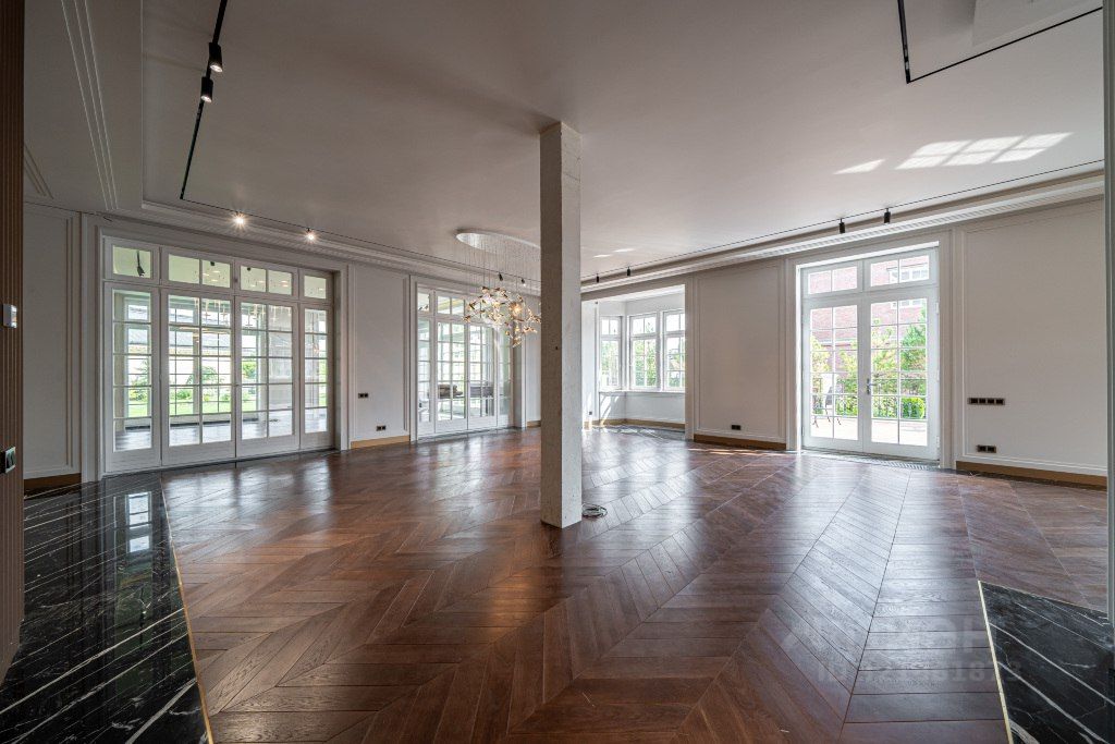 - Английская архитектура: большие окна, эркеры, террасы, камины. - Отделка премиальными материалами: дубовый паркет, натуральный камень. - Кухня оснащена техникой Miele, сантехника — от ведущих европейских брендов. - На участке выполнен профессиональный ландшафтный дизайн.