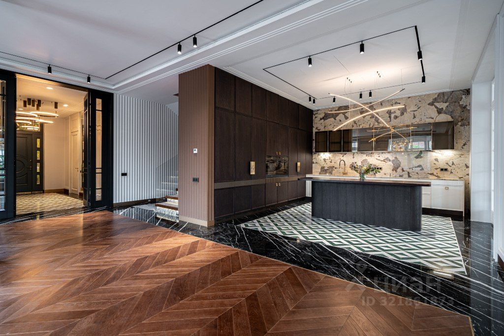 Площадь дома — 1050 м2 Этажей — 3 + мансарда Участок — большой, с ландшафтным дизайном Гараж — на 4 автомобиля