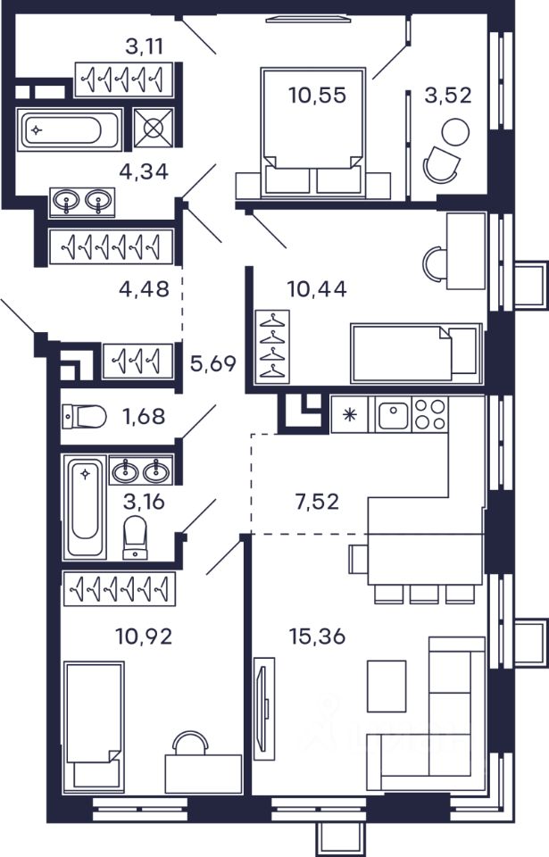 Продаётся 3-комнатная квартира в сданном доме ( 2 очередь (Корпус 9)), срок сдачи: II-кв. 2025, общей площадью 80.77 кв.м., на 9 этаже. Многофункциональный комплекс ''Тетрис'' будет построен в Красногорске - районном центре МО в Железнодорожном переулке.От ЖК до МКАД - примерно 2,7 км по Волоколамскому шоссе, до которого от комплекса менее 100 м.Ближе всего к ЖК находятся станции метро ''Мякинино'' (2,6 км), ''Волоколамская'' (3 км) ''Митино'' (3,3 км), чуть дальше - ''Пятницкое шоссе'', ''Строгино'', ''Спартак'' и ''Тушинская''.Всего 200 м от ЖК расположена железнодорожная платформа Павшино, от которой полчаса на электричке до Рижского вокзала (метро ''Рижская''), а до платформы Тушино (метро ''Тушинская'') - 10 минут. Около платформы Павшино есть и автовокзал.