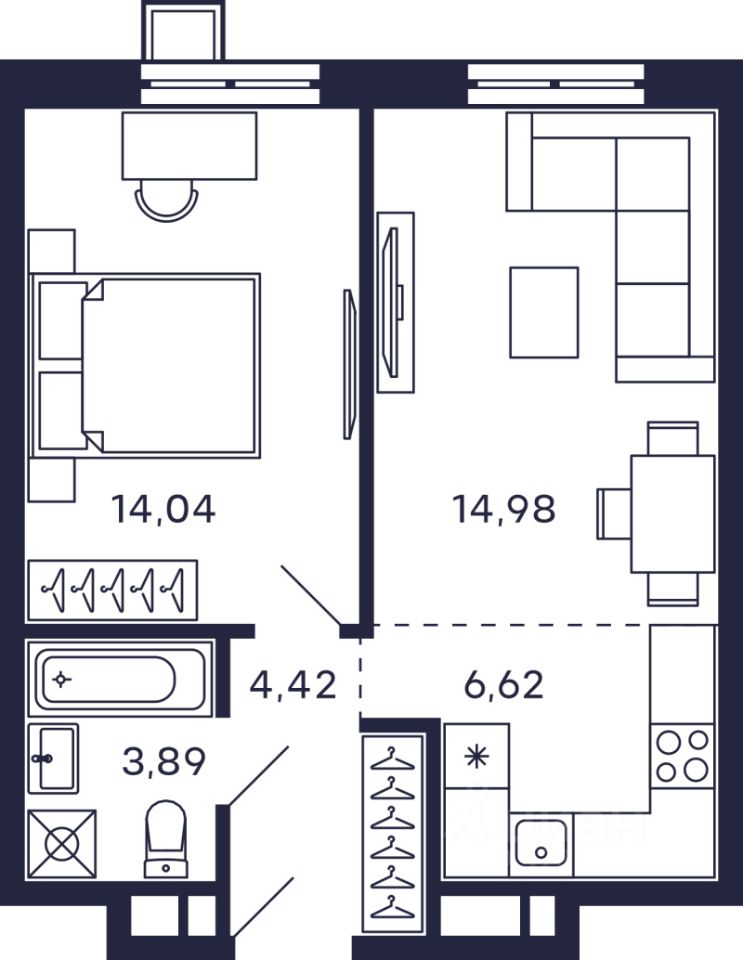 Общая площадь43,9 м2