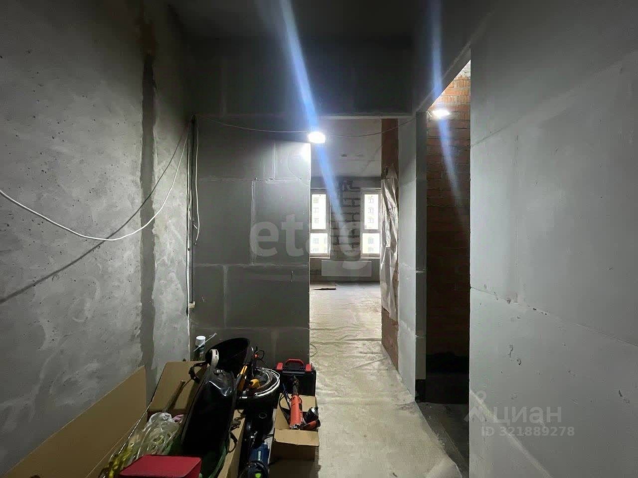 Студия без отделки. В коридоре ниша под большой встроенный шкаф. Два окна, много света. Установлена сантехника (унитаз, душ).