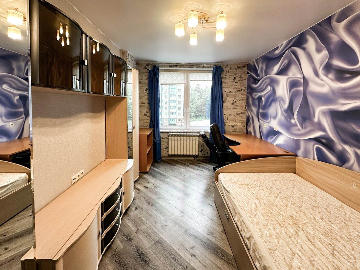 Квартира расположена на 5 этаже 25-этажного дома. Из окон открывается вид на улицу и двор. Жилая площадь составляет 35 кв. м, а кухня — 16 кв. м. Есть большая 7 метровая утепленная лоджия, где можно обустроить уютное место для отдыха или даже 2.Так как на лоджию 2 выхода: из комнаты и кухни.