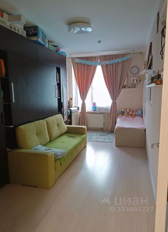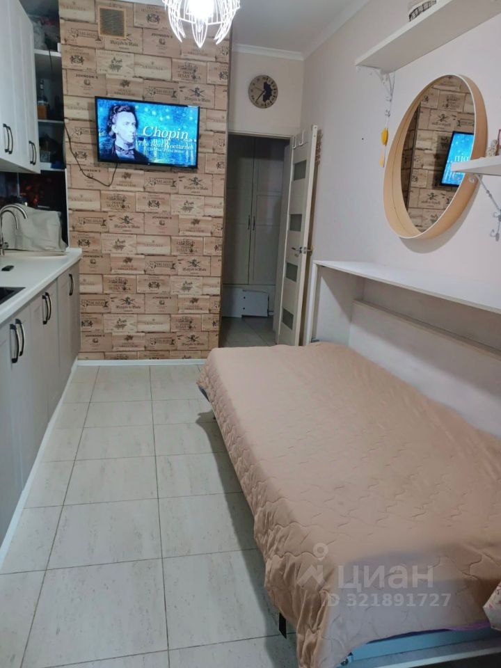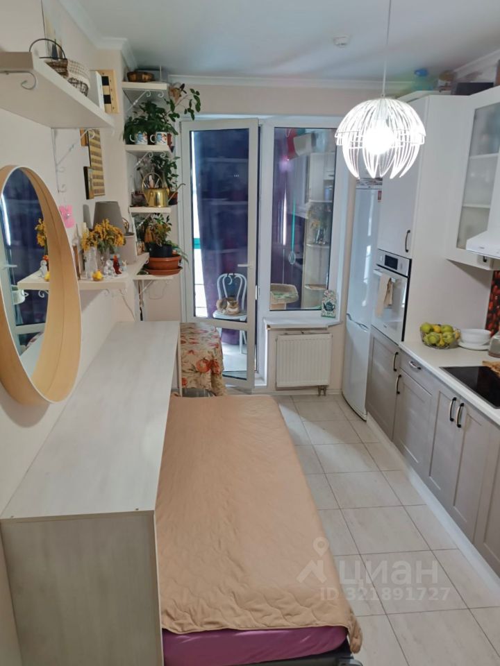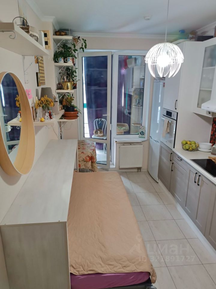 Общая площадь 35,1кв.м.+ застекленная лоджия, просторная кухня 12кв.м., жилая комната 14,5кв.м., санузел совмещенный. В квартире выполнен качественный ремонт в светлых тонах. Остается кухонный гарнитур с встроенной техникой, встроенные спальные места на кухне и в комнате, встроенный шкаф в прихожей.