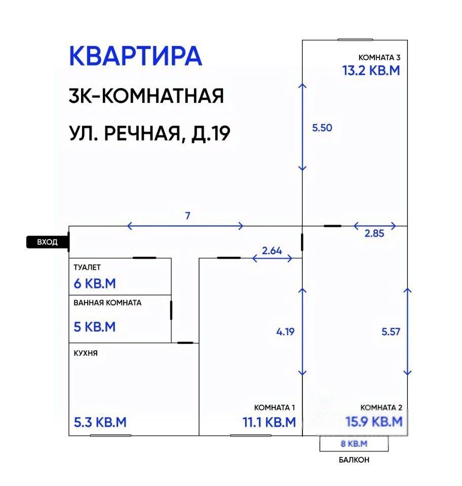 Простор и свет: Уникальная планировка с общей площадью 57 м² и жилой 45 м² предлагает нестандартно много места для семьи. Большие комнаты, широкий коридор и уютная кухня ждут вас.