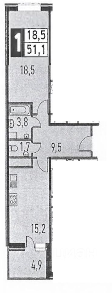 - спальня- 18,5 кв.м,