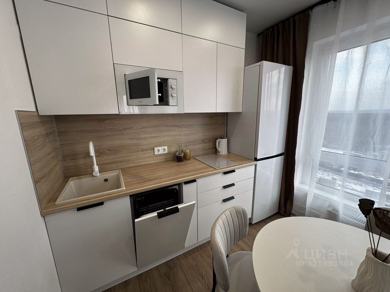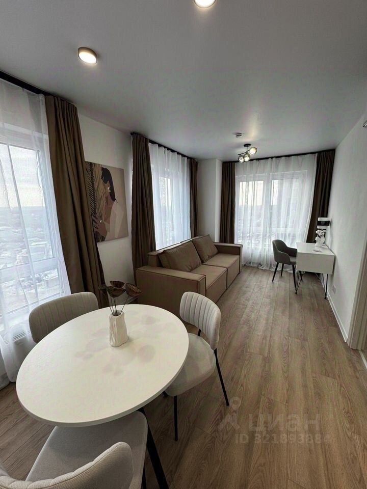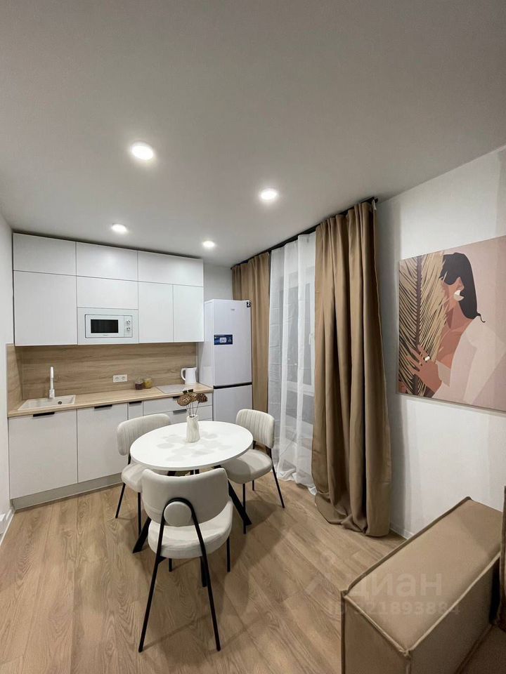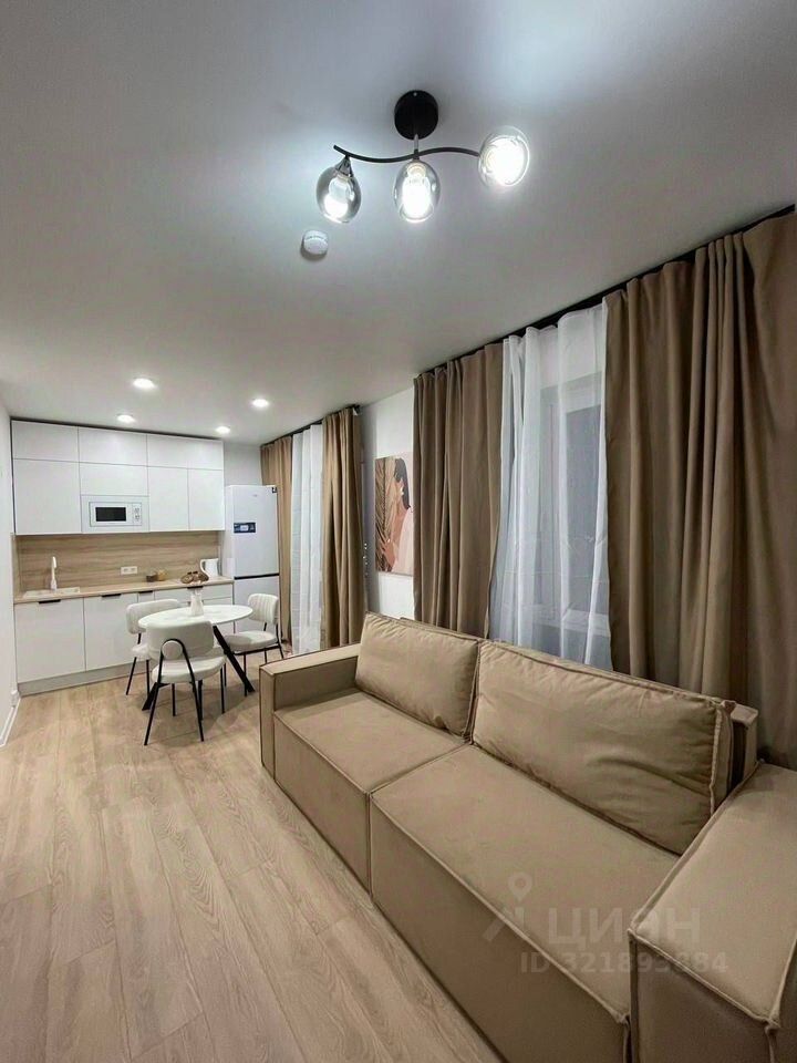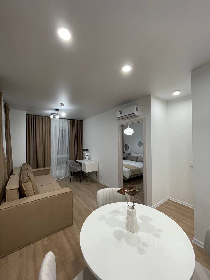 Кухня гостиная, большая гардеробная — никаких шкафов, спальня. В кухне — гостиной три окна, очень светлая, можно зонировать как отдельную комнату при желании. Установлен кондиционер. Все для комфортного проживания имеется. Вся мебель и техника новые! Показы по договоренности.