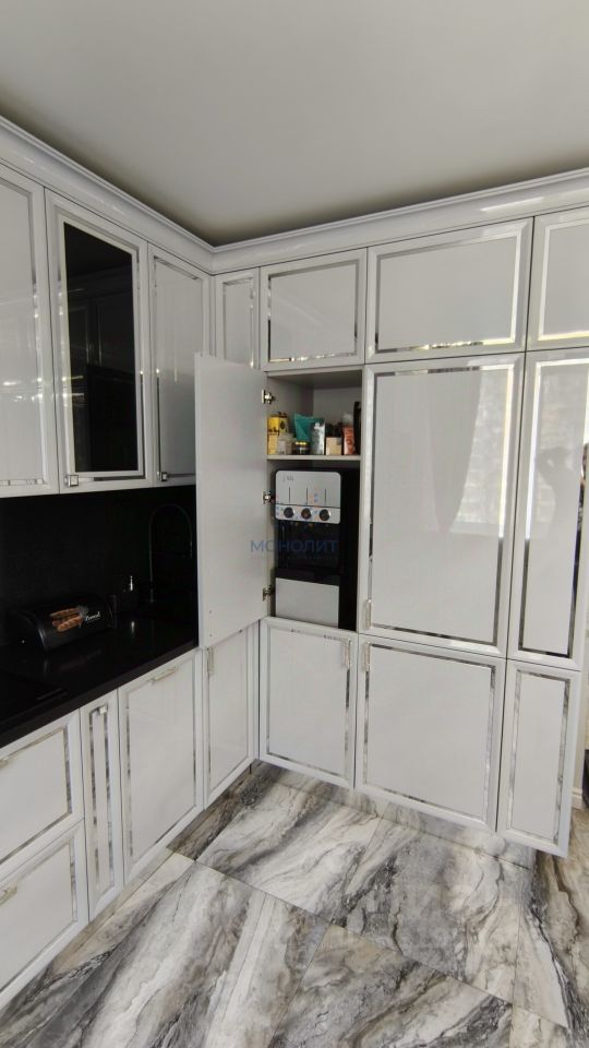 Роскошный ремонт для себя с применением лучших европейских материалов: Дизайн и отделка: Испанская плитка, дубовый паркет, итальянские сантехника и межкомнатные двери, американская краска для стен. Авторская мебель на заказ, безупречно вписанная в планировку. Техническое оснащение: Вся кухонная техника Bosch. Система ''теплый пол'' в санузлах и прихожей. Электрика немецкого производства. Надежная и современная входная дверь. Пространство для жизни: Продуманная европланировка с просторной кухней-гостиной 30 кв.м. и двумя санузлами. Окна на две стороны — на тихий двор и панораму города.