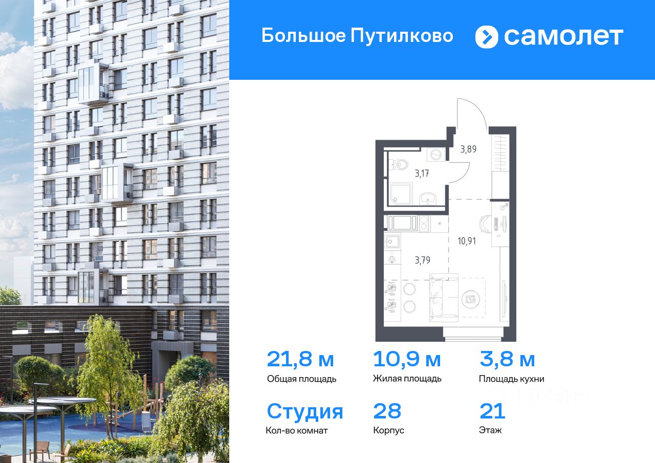 Строим кварталы для жизни с заботой о будущем. Предлагается квартира студия комфорт-класса 21,76 кв.м в корпусе 28 на 21 этаже, в ЖК ''Большое Путилково'' Квартира с чистовой отделкой. Доступность дополнительных опций уточняйте у застройщика.