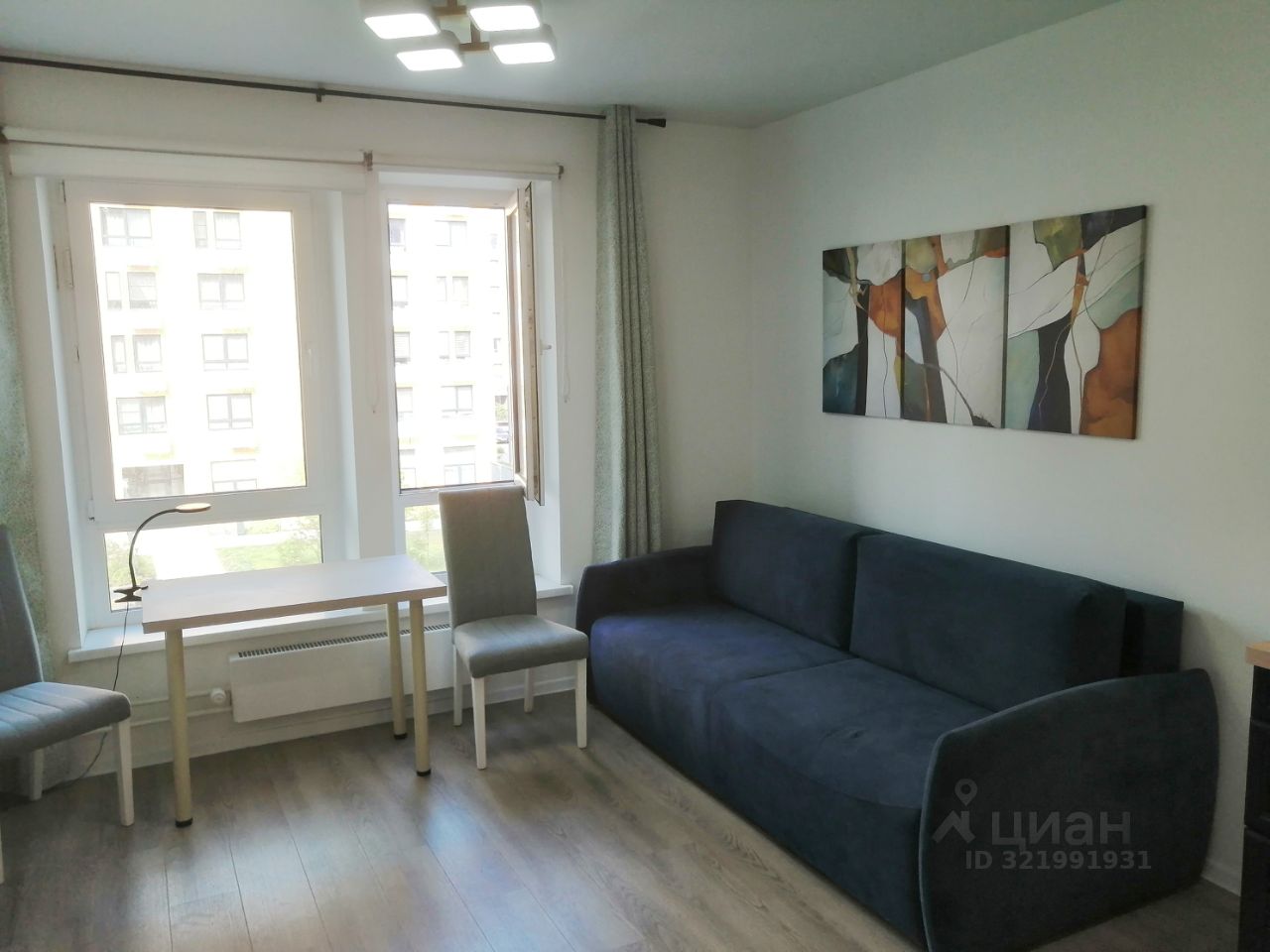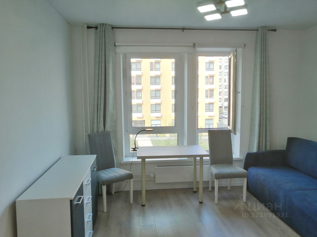 Окна выходят во двор. Студия полностью готова к проживанию и оснащена всем необходимым для комфортной жизни, вся мебель и техника новые.