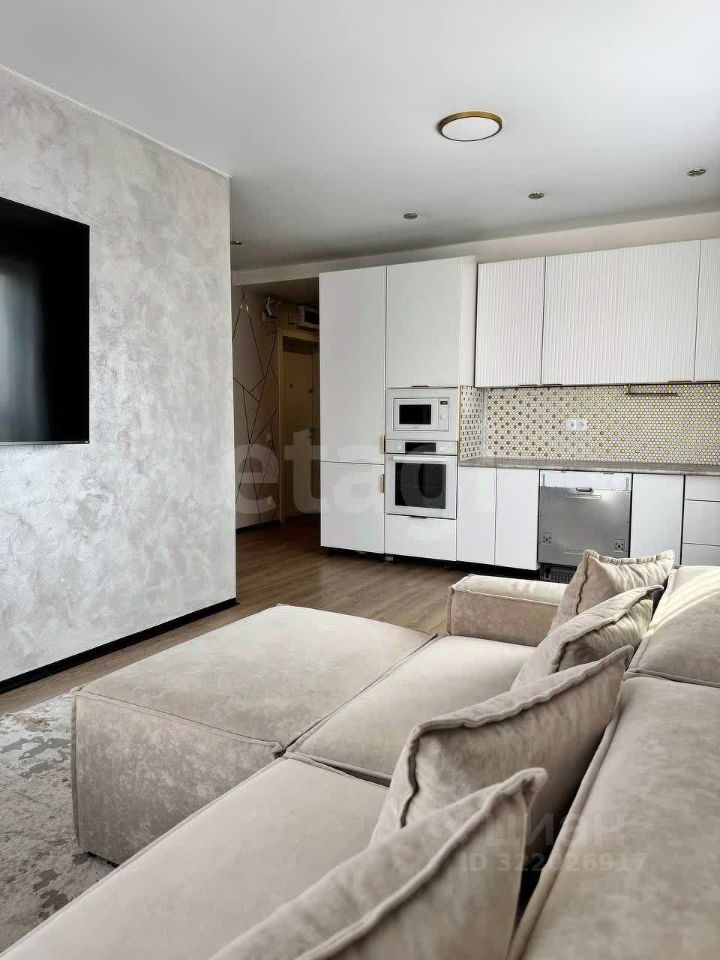 При входе в квартиру вас встречает просторный холл, который плавно переходит в светлую и уютную гостиную с панорамными окнами. Панорамные окна обеспечивают отличное естественное освещение и открывают великолепный вид на окружающую природу и городские пейзажи. Гостиная объединена с кухней, что создает ощущение простора и свободы.