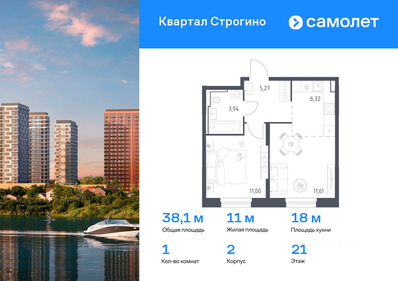 Строим кварталы для жизни с заботой о будущем. Предлагается 1-комнатная квартира комфорт-класса 38,14 кв.м в корпусе 2 на 21 этаже, в ЖК ''Квартал Строгино'' Квартира без отделки. Доступность опции ''отделка'' и возможность комплектации мебелью и декором уточняйте у застройщика.