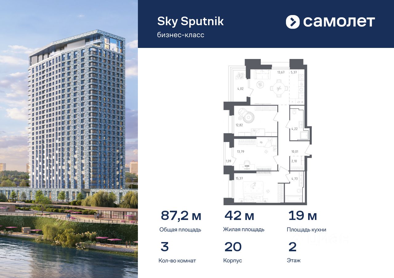 Строим кварталы для жизни с заботой о будущем. Предлагаются 3-комнатные апартаменты бизнес-класса 87,19 кв.м в корпусе 20 на 2 этаже, в Sky Sputnik Апартаменты без отделки. Доступность опции ''отделка'' и возможность комплектации мебелью и декором уточняйте у застройщика.