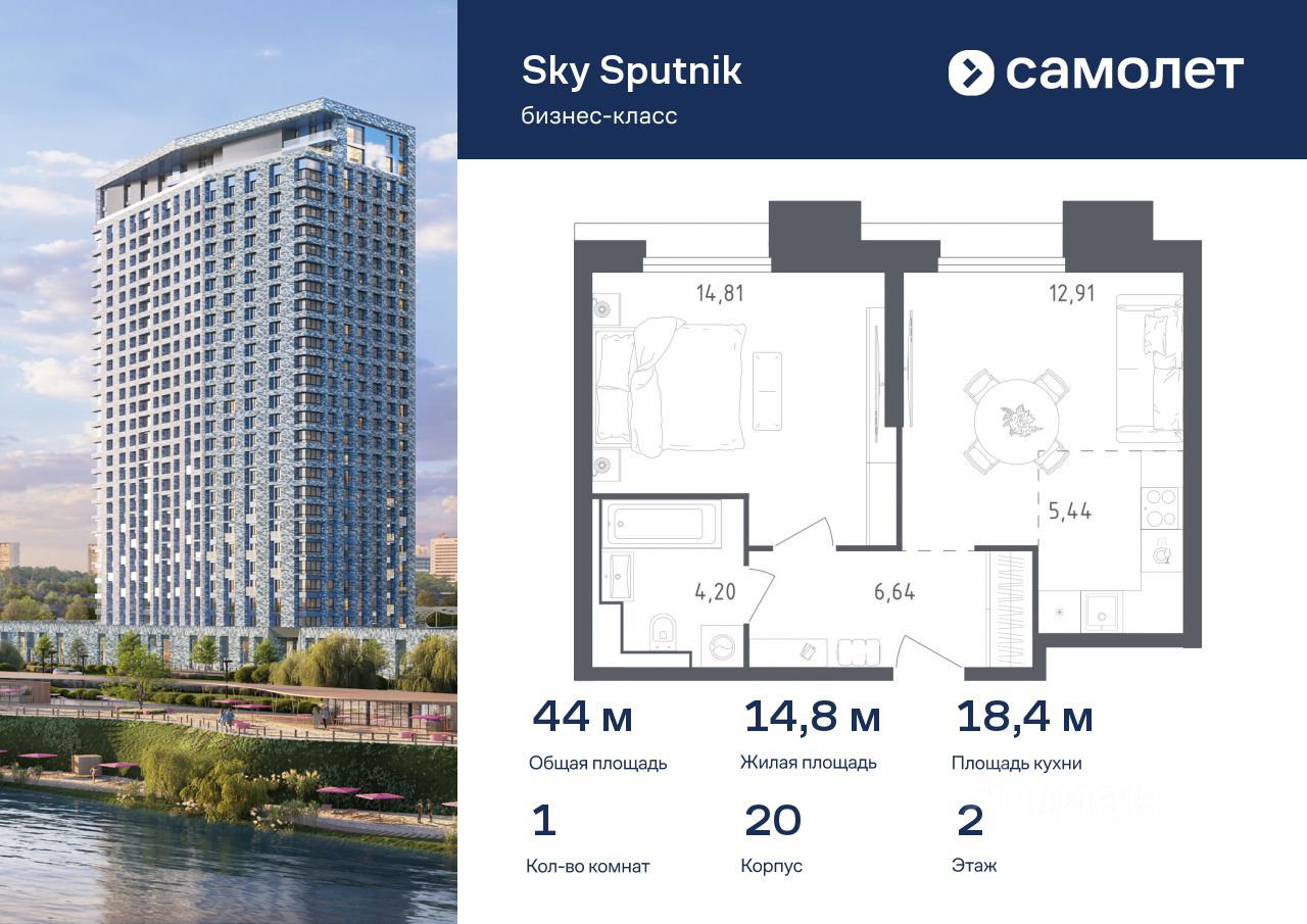 Строим кварталы для жизни с заботой о будущем. Предлагаются 1-комнатные апартаменты бизнес-класса 44 кв.м в корпусе 20 на 2 этаже, в Sky Sputnik Апартаменты без отделки. Доступность опции ''отделка'' и возможность комплектации мебелью и декором уточняйте у застройщика.