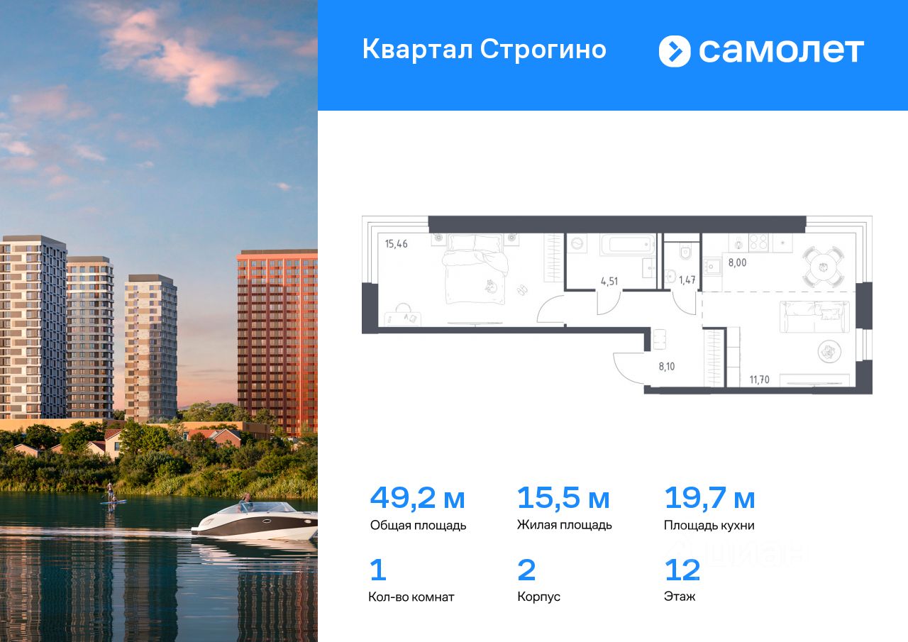 Строим кварталы для жизни с заботой о будущем. Предлагается 1-комнатная квартира комфорт-класса 49,24 кв.м в корпусе 2 на 12 этаже, в ЖК ''Квартал Строгино'' Квартира с чистовой отделкой. Доступность дополнительных опций уточняйте у застройщика.