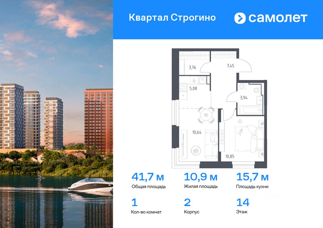 Строим кварталы для жизни с заботой о будущем. Предлагается 1-комнатная квартира комфорт-класса 41,72 кв.м в корпусе 2 на 14 этаже, в ЖК ''Квартал Строгино'' Квартира без отделки. Доступность опции ''отделка'' и возможность комплектации мебелью и декором уточняйте у застройщика.