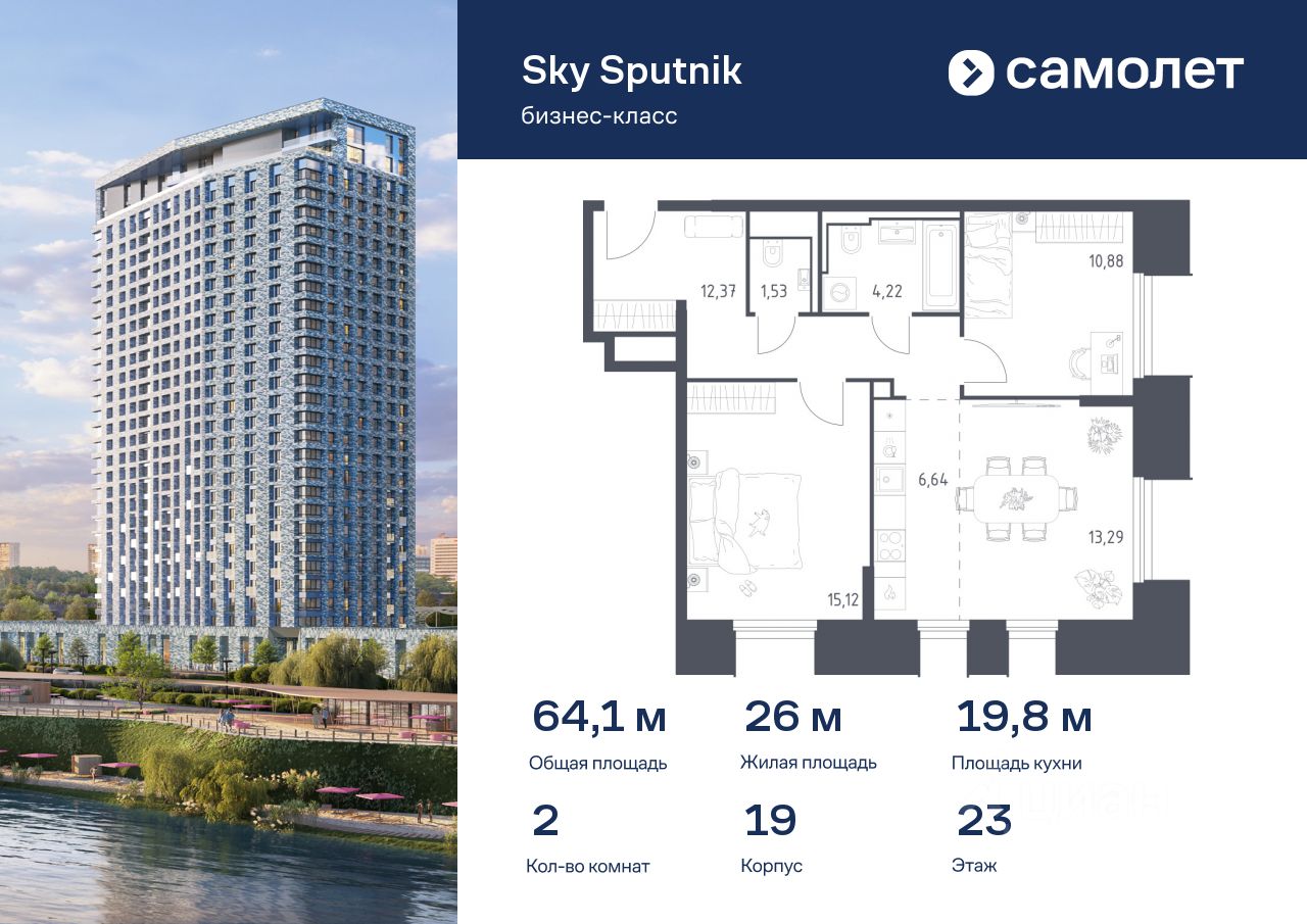 Строим кварталы для жизни с заботой о будущем. Предлагаются 2-комнатные апартаменты бизнес-класса 64,05 кв.м в корпусе 19 на 23 этаже, в Sky Sputnik Апартаменты без отделки. Доступность опции ''отделка'' и возможность комплектации мебелью и декором уточняйте у застройщика.