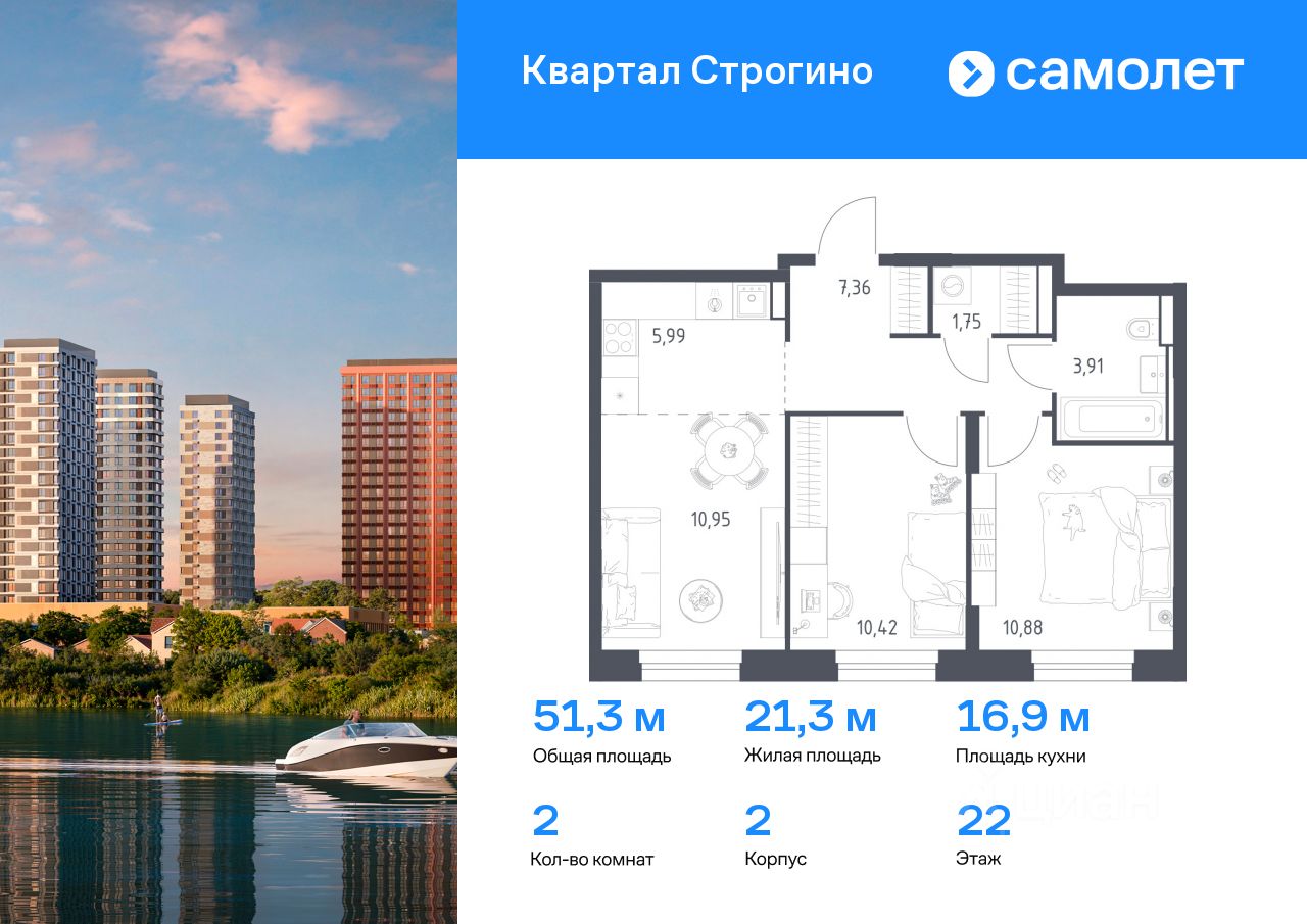 Строим кварталы для жизни с заботой о будущем. Предлагается 2-комнатная квартира комфорт-класса 51,26 кв.м в корпусе 2 на 22 этаже, в ЖК ''Квартал Строгино'' Квартира без отделки. Доступность опции ''отделка'' и возможность комплектации мебелью и декором уточняйте у застройщика.