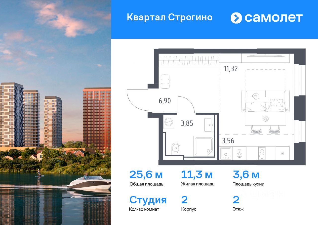 Строим кварталы для жизни с заботой о будущем. Предлагается квартира студия комфорт-класса 25,63 кв.м в корпусе 2 на 2 этаже, в ЖК ''Квартал Строгино'' Квартира с чистовой отделкой. Доступность дополнительных опций уточняйте у застройщика.