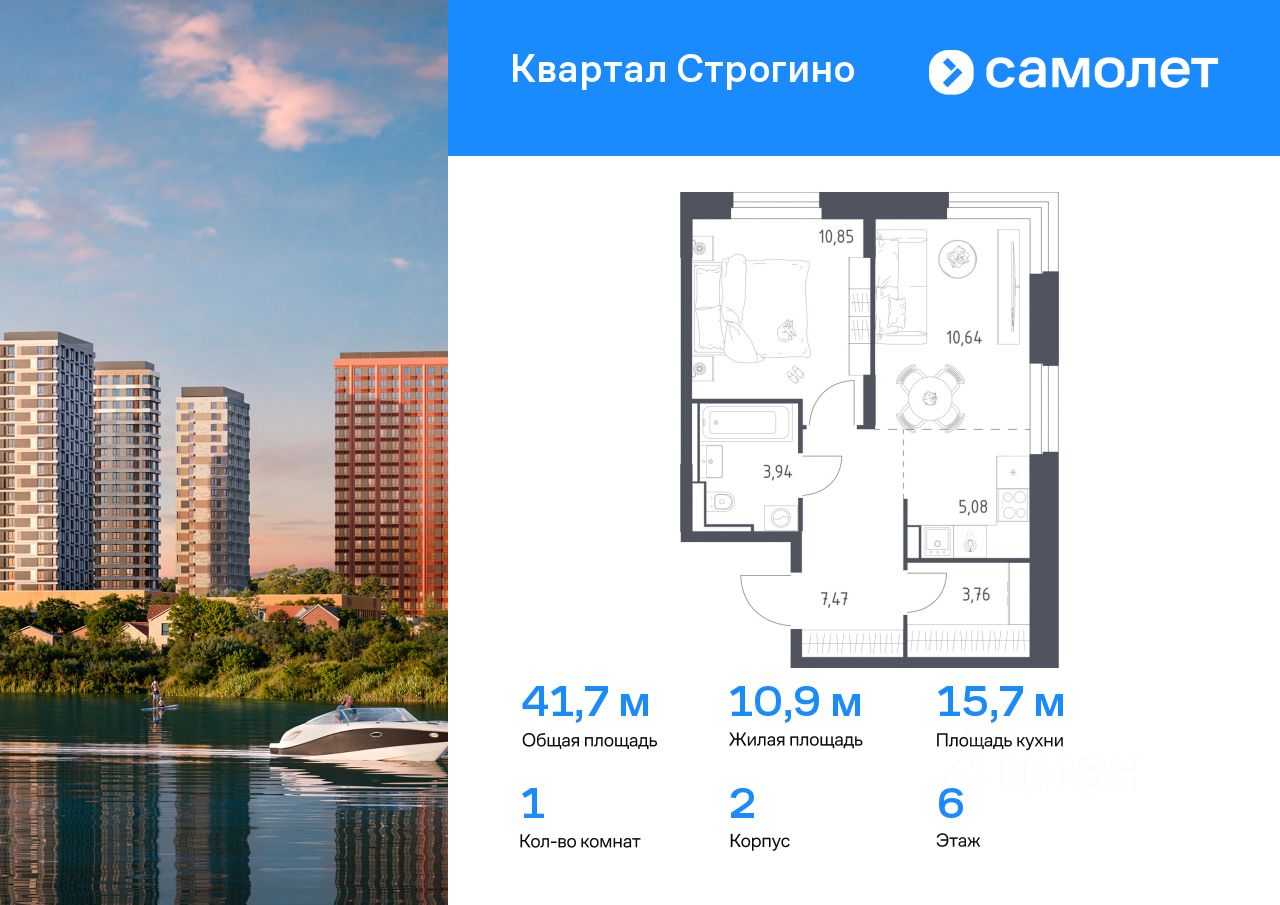 Строим кварталы для жизни с заботой о будущем. Предлагается 1-комнатная квартира комфорт-класса 41,74 кв.м в корпусе 2 на 6 этаже, в ЖК ''Квартал Строгино'' Квартира без отделки. Доступность опции ''отделка'' и возможность комплектации мебелью и декором уточняйте у застройщика.