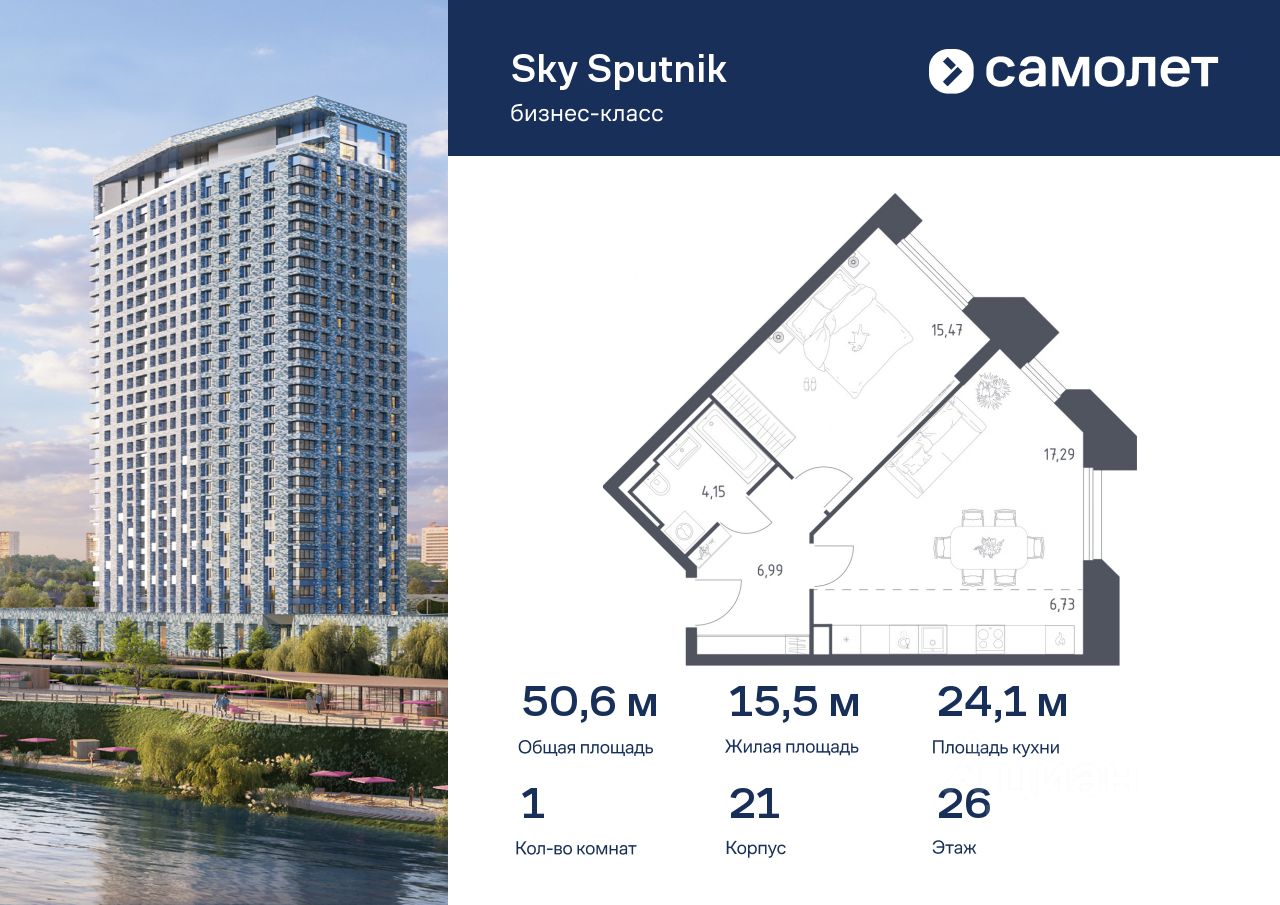 Предлагаются 1-комнатные апартаменты бизнес-класса 50,63 кв.м в корпусе 21 на 26 этаже, в Sky Sputnik Апартаменты с чистовой отделкой. Доступность дополнительных опций уточняйте у застройщика.