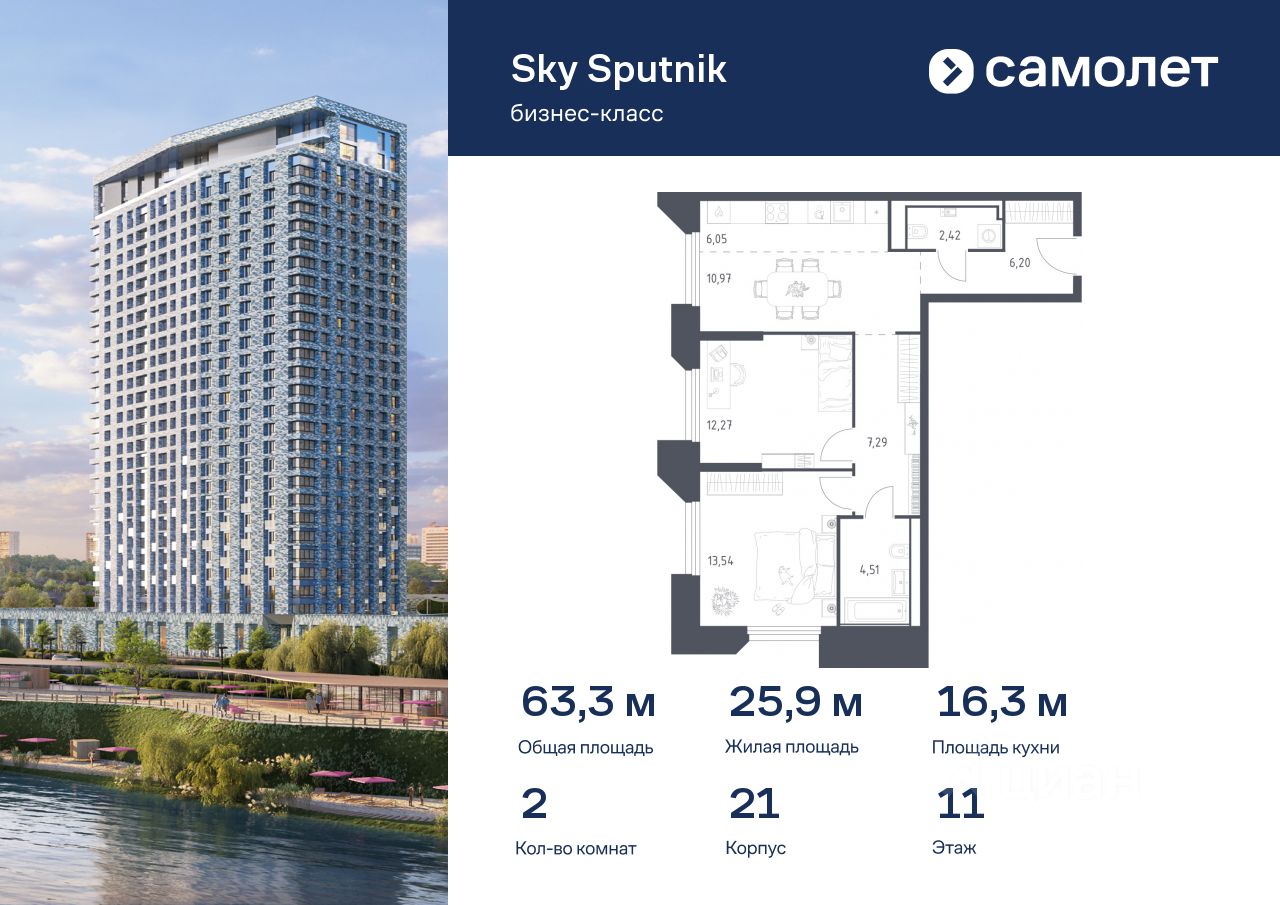 Строим кварталы для жизни с заботой о будущем. Предлагаются 2-комнатные апартаменты бизнес-класса 63,25 кв.м в корпусе 21 на 11 этаже, в Sky Sputnik Апартаменты с чистовой отделкой. Доступность дополнительных опций уточняйте у застройщика.