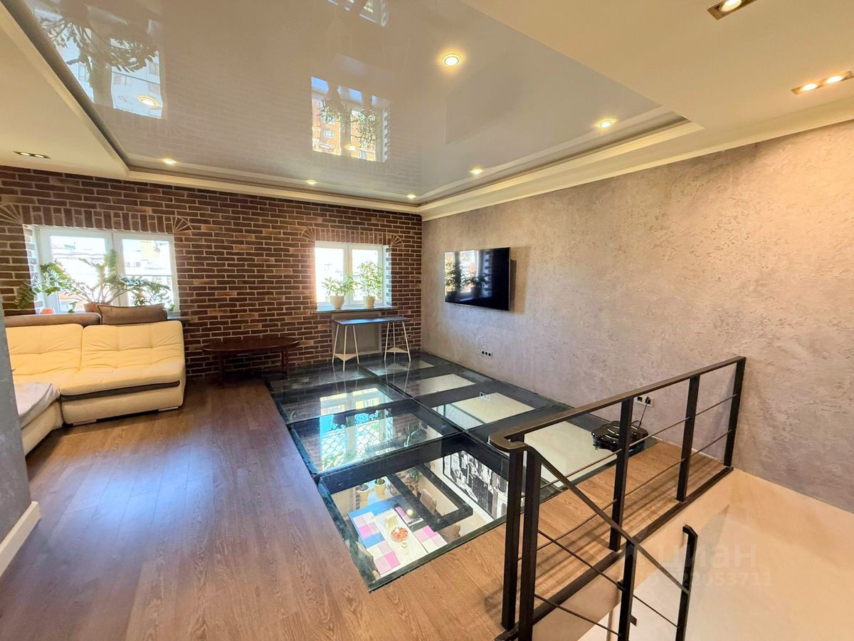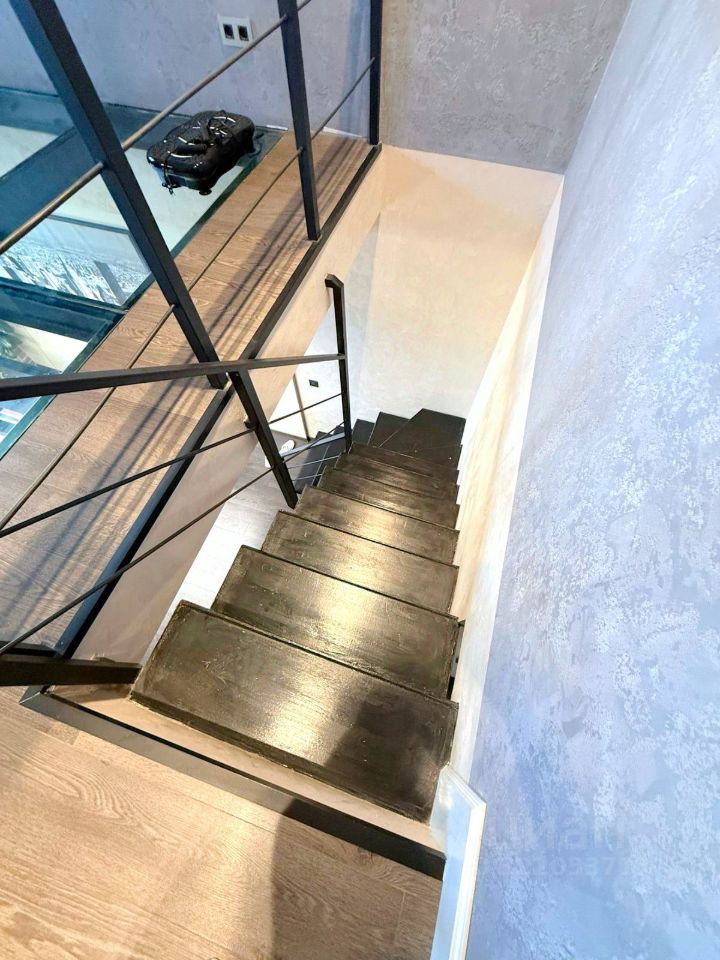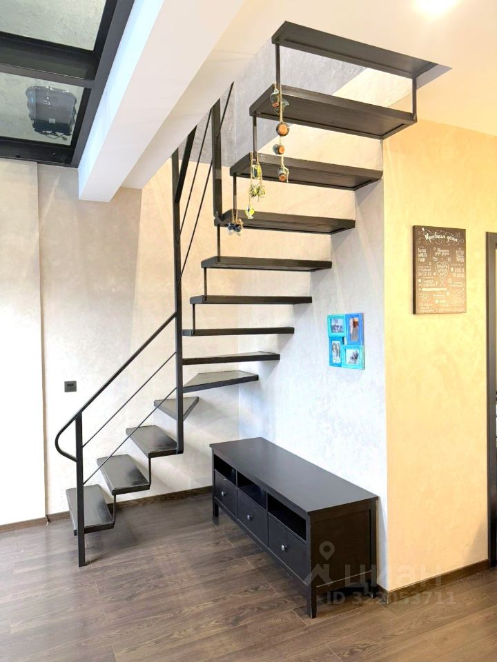 В квартире выполнен качественный дизайнерский ремонт с использованием первоклассных строительных материалов. На первом этаже располагается просторная кухня-гостиная с современным кухонным гарнитуром, барной стойкой и уютной обеденной зоной. С балкона открывается прекрасный вид на улицу. Также на первом этаже располагается комната свободного назначения и первый санузел. На второй этаж ведет устойчивая лестница. Над кухней и в гостинной зоне пол выполнен из прочного стекла. В гостинной располагается удобный диван и телевизор. Также на втором этаже располагается спальная, второй санузел и гардеробная. Отличные соседи, чистый и ухоженный подъезд.