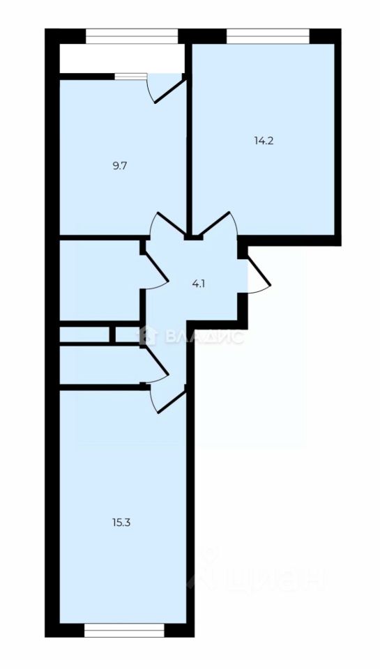 Комнаты изолированы, окна выходят на две стороны. Просторная квартира, нет несущих перегородок, можно в будущем спланировать под любые дизайнерские решения.