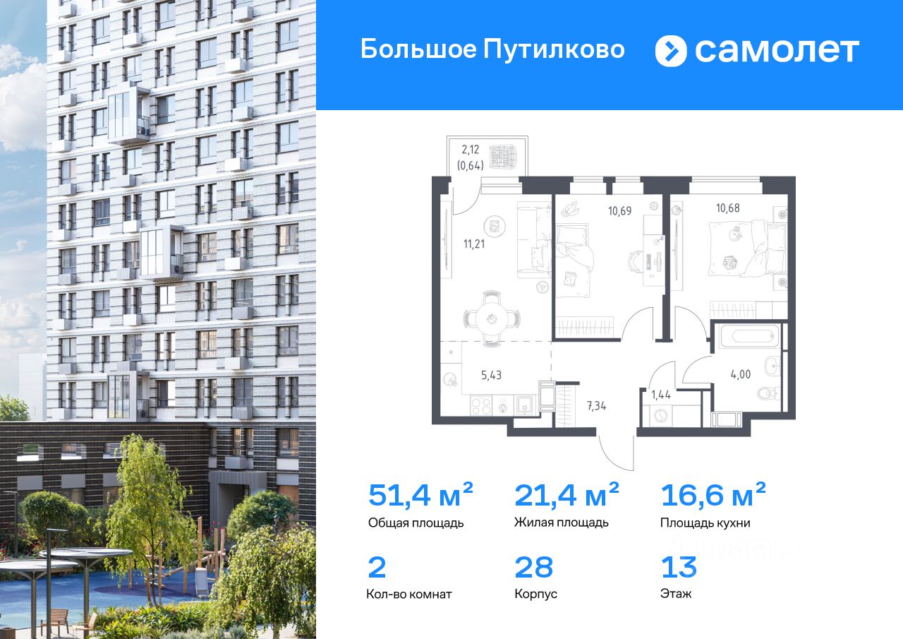 Предлагается 2-комнатная квартира комфорт-класса 51,43 кв.м в корпусе 28 на 13 этаже, в ЖК ''Большое Путилково'' Квартира без отделки. Доступность опции ''отделка'' и возможность комплектации мебелью и декором уточняйте у застройщика.