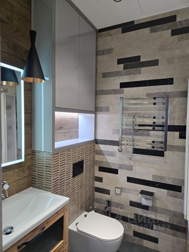 Санузел совмещенный. Есть всё необходимое. Электрический полотенцесушитель. Зеркало с подсветкой.