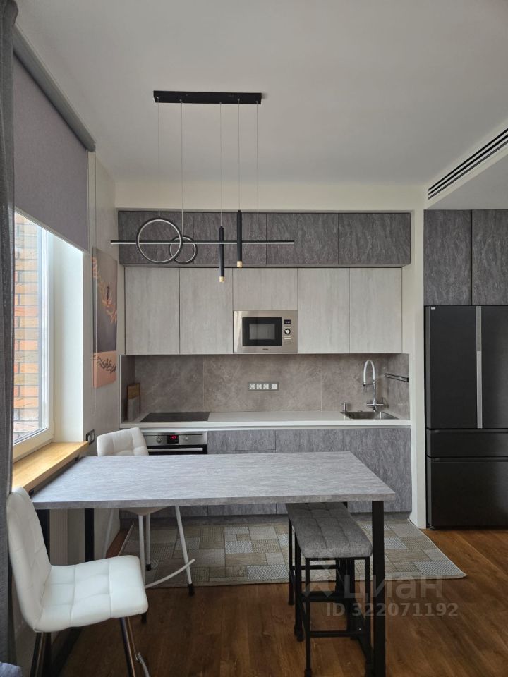 Есть всё необходимое: плита, вытяжка, духовой шкаф, свч, посудомоечная машина, холодильник, измельчитель, чайник, тостер. Большой стол и стулья, мягкий диван-кровать, напротив ТВ зона.