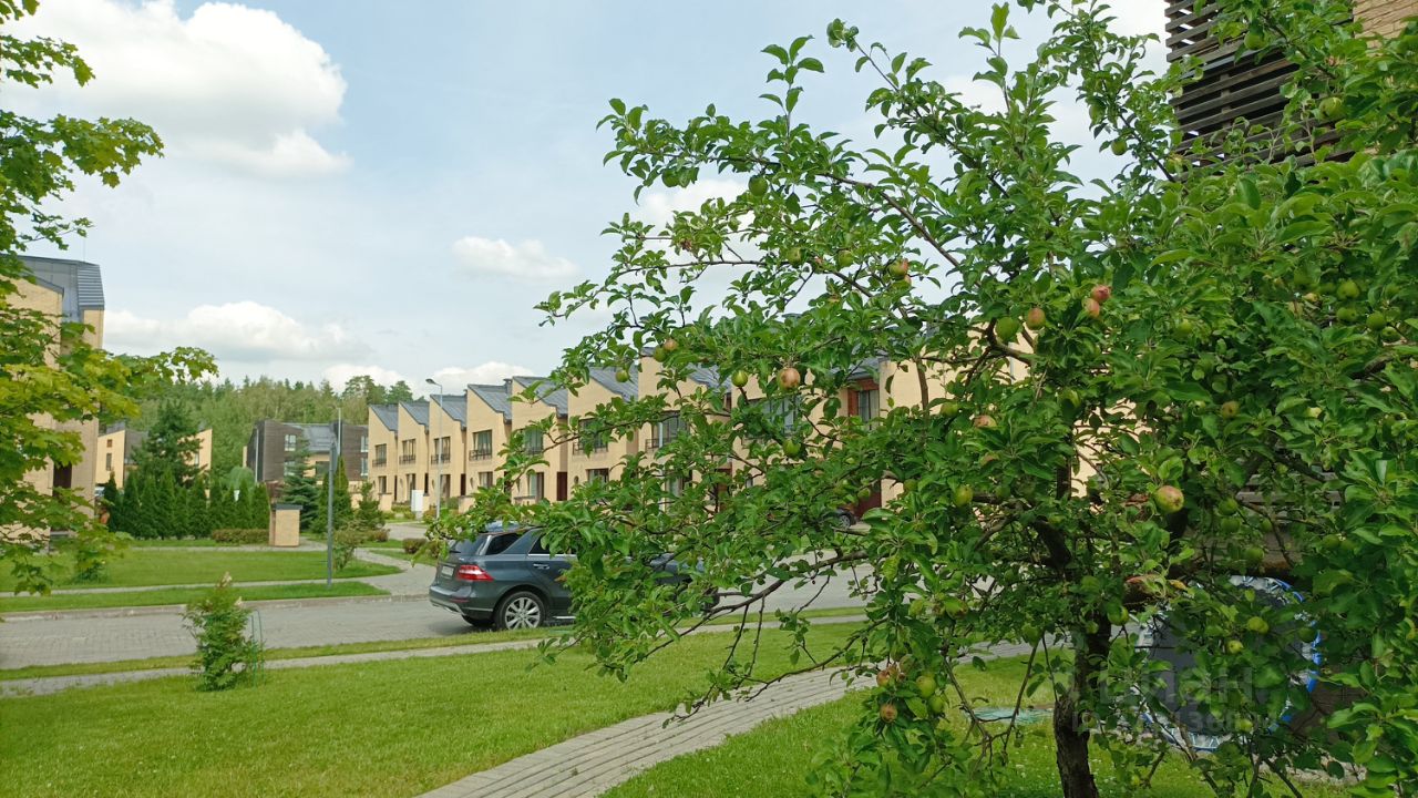 Мы предлагаем к продаже трехкомнатную квартиру с террасой, паркингом в малоэтажном доме. Общая площадь квартиры (без учета террасы)- 89 кв. м, две изолированные спальни (по 13 кв. м), гостиная (21кв. м), лоджия, СУ совмещенный (с душевой кабиной), гардеробная комната, просторная кухня (16кв.м) с выходом на террасу (24 кв. м). Квартира расположена на первом этаже, но в этом ее преимущество, так как только у первых этажей есть террасы, при этом квартира поднята над уровнем земли на полноценный цокольный этаж. Под окнами пруд, лес, природа, яблони...