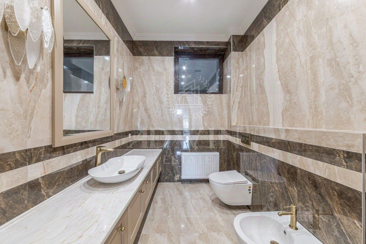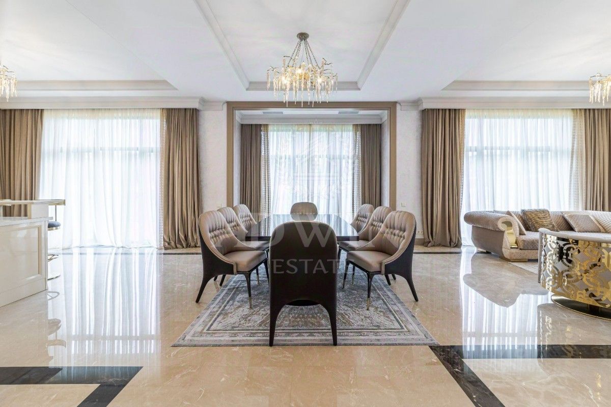 Дом построен в 2 этажа площадью 400 кв.м на участке 12 соток. В отделке использованы натуральные материалы - мрамор, итальянская керамика. Дизайнерская мебель. Дом оборудован всей необходимой бытовой техникой.
