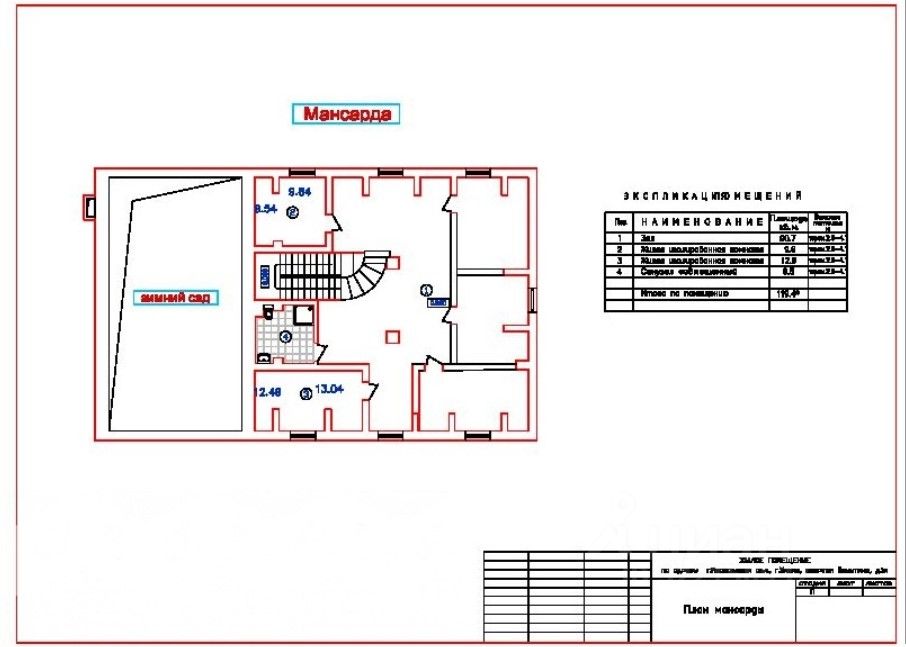 Первый и второй этажи использовались как офисное пространство, кабинетная планировка. Третий этаж (мансарда) организована как мини-гостиница: 4 отдельных комнаты и санузел.